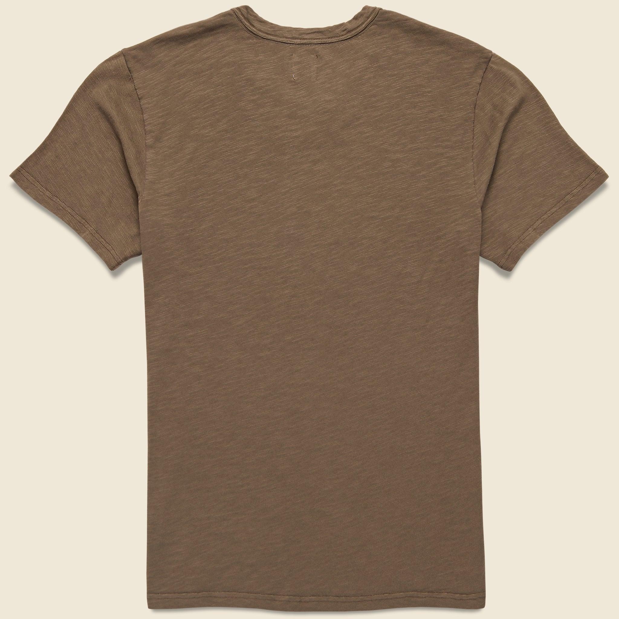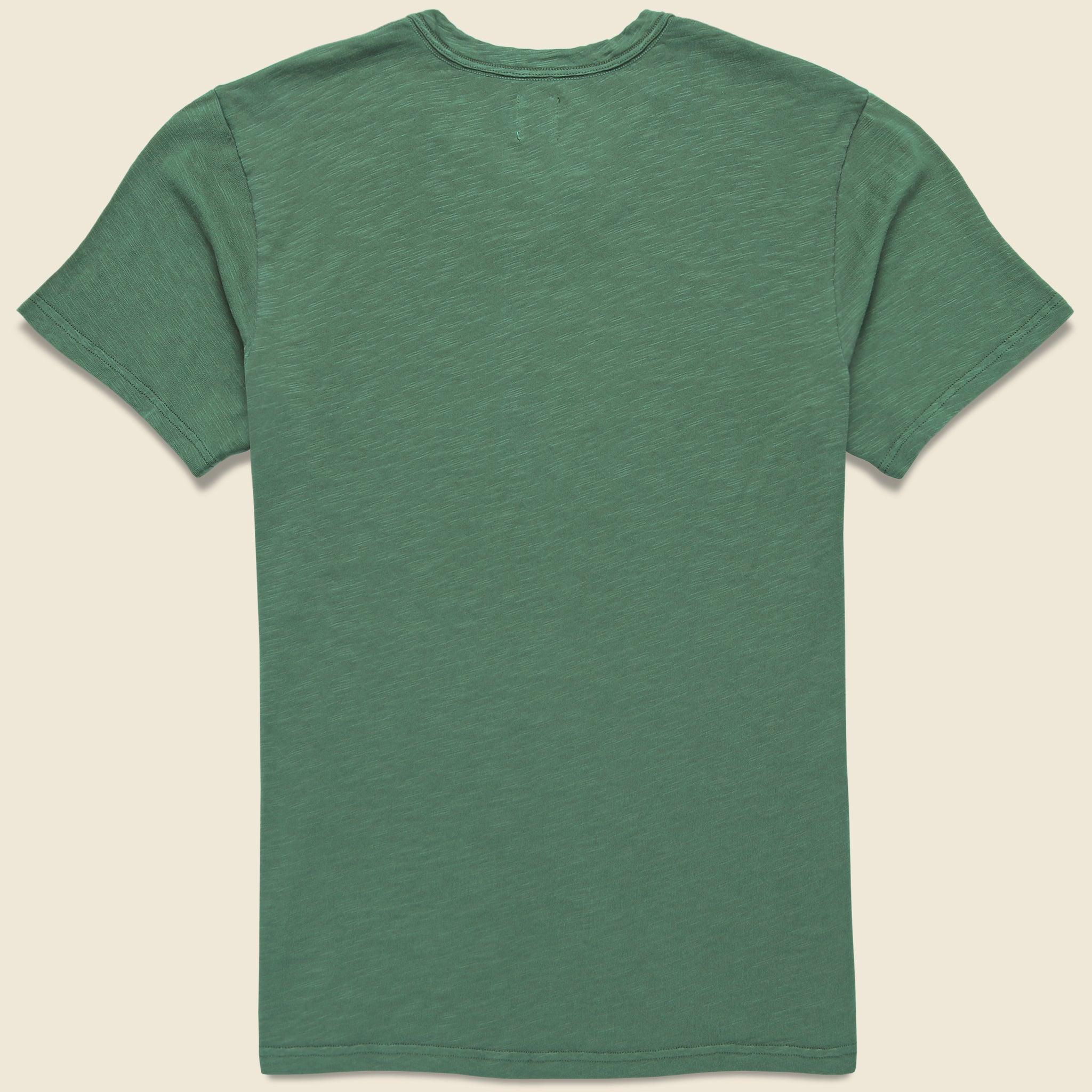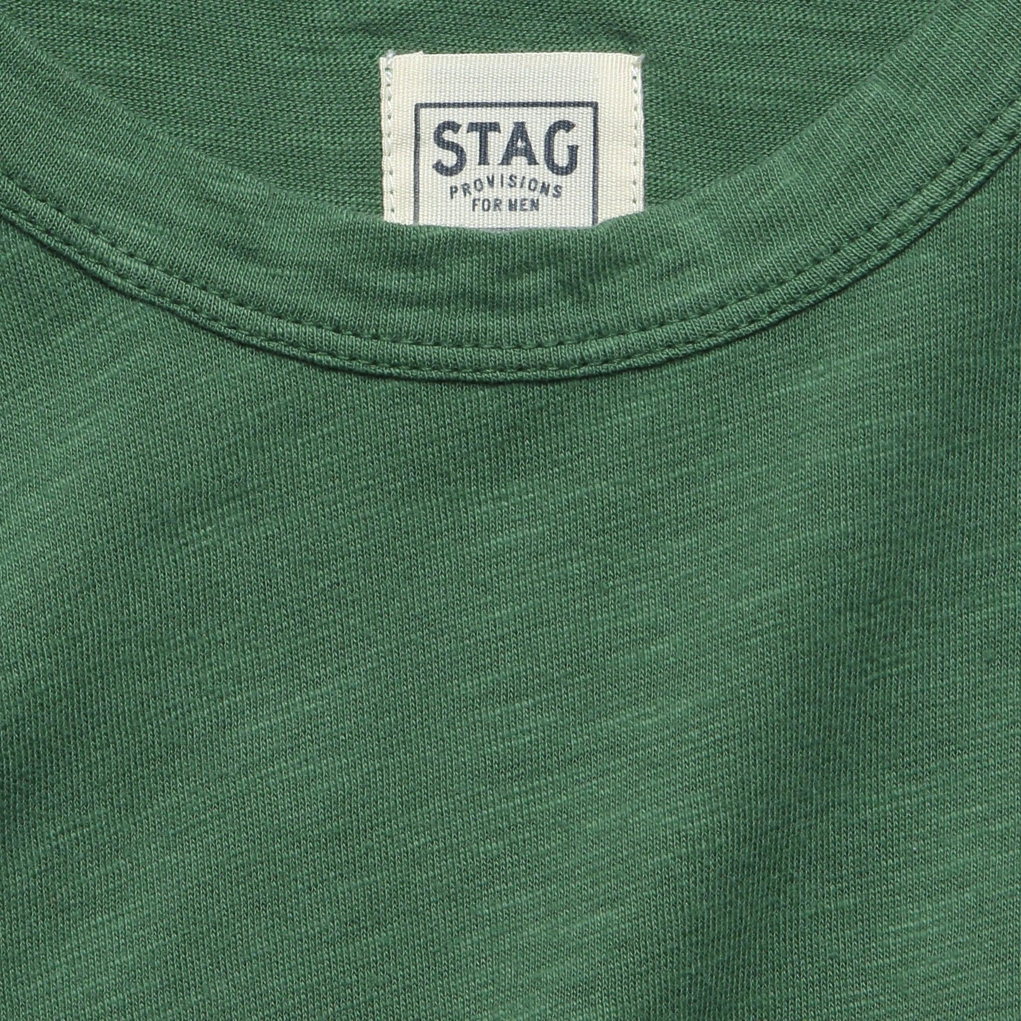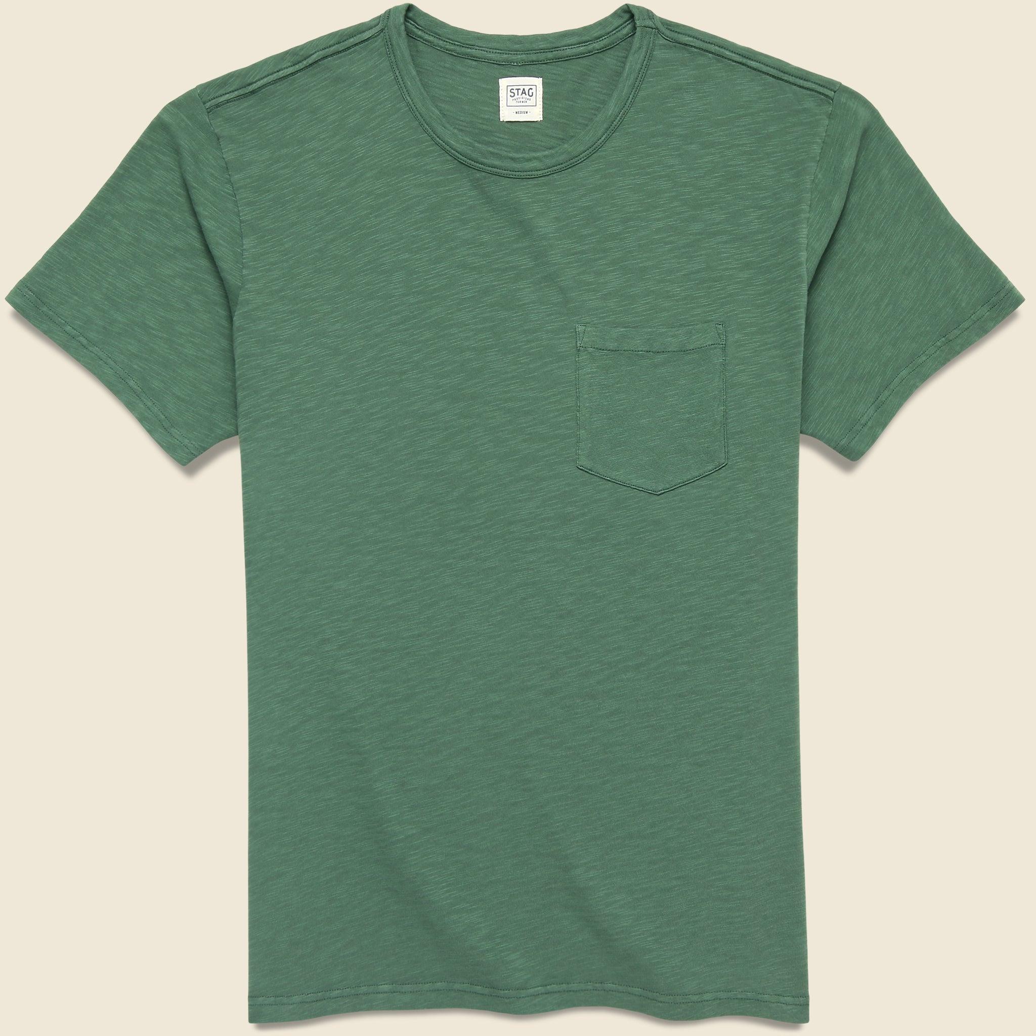 Our Essential Pocket Tee is made in Portugal with incredibly soft, slub cotton that’s tailored with a true-to-size fit that’s not too loose, not too slim, and perfect for year-round wear. We designed them with a sewn-on neckline for a vintage-inspired look and to help keep it from stretching out after years of use. Each tee has been garment-dyed and washed to minimize shrinkage, and will only get softer and better through wash and wear. STAG exclusive Soft, slub-textured cotton Garment-dyed and pre-shrunk Sewn-on neckline Single chest pocket Squared hem Traditional fit that runs true to size We recommend taking your normal size or taking one size up for a more relaxed fit Made in Portugal Materials: 100% cotton The following measurements are for size Medium: Chest: 42” | Shoulder: 18” | Sleeve: 17 ½” | Length: 27 ½”