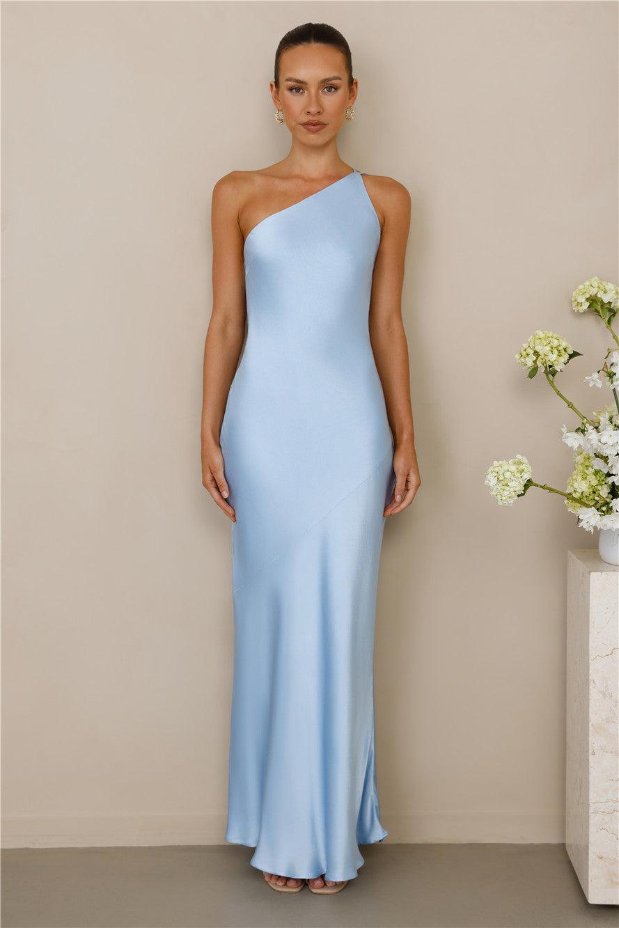 The Evangeline One Shoulder Satin Maxi Dress Blue