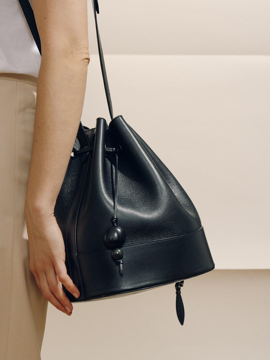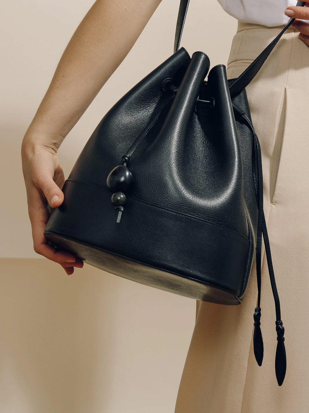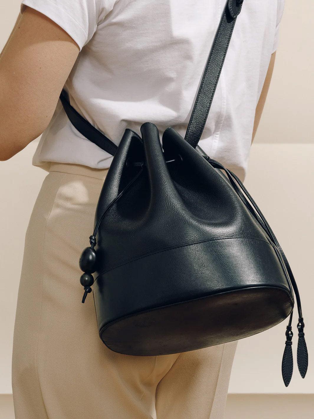 The Drawstring is the perfect blend of style, functionality, and quality. This classic everyday companion is a must-have in your wardrobe. Inspired by clean lines and a timeless aesthetic, this drawstring bag is designed to cater to all your daily needs. Crafted with the finest leather it features a roomy bucket bag interior, adjustable strap, and custom drawstring closure, and is perfectly proportioned for daily use. One-of-a-kind tagua charms- indigenous to Latin America- add a natural accent to this style. With its extra-large size and a fully lined interior you can carry all your essentials with ease and ensure that your belongings are safe and secure.