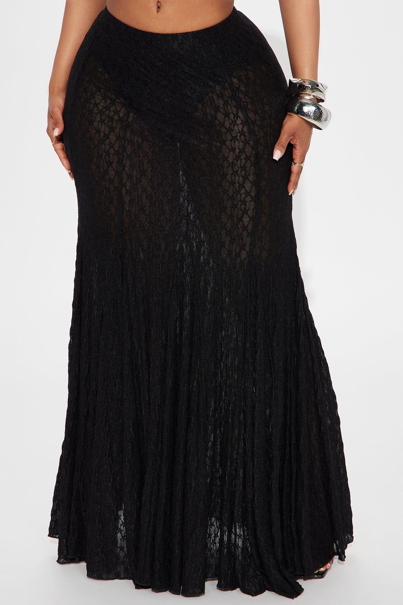 The Favorite Pleated Sheer Lace Maxi Skirt - Black Female