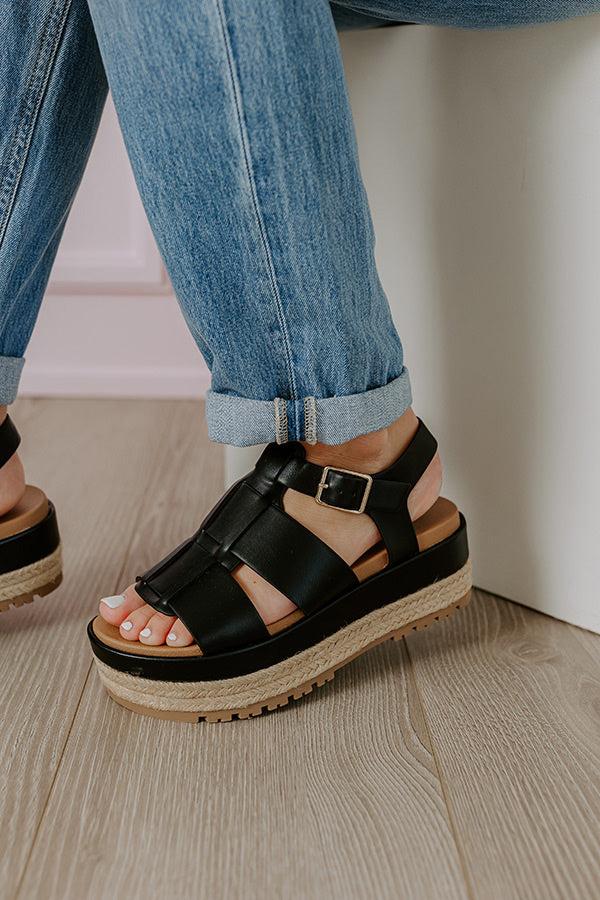 The Frankie Faux Leather Espadrille in Black