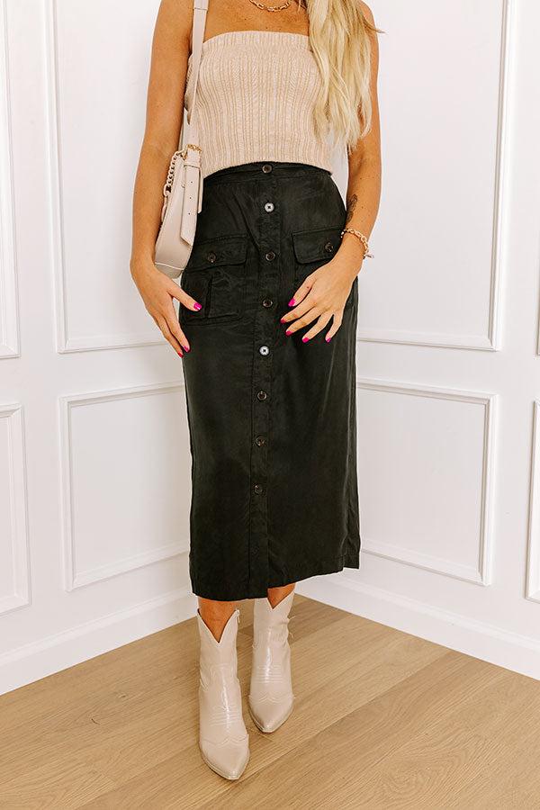 - Stroll down the street in style with this trendy skirt! - Waistline with elastic back - Button down - Two functional front pockets with button closure - Straight cut with finished hemline - Fitted silhouette Measurements S : Hip 32", Length 33", Waist 24-26". M : Hip 34", Length 34", Waist 26-28". L : Hip 36", Length 34.5", Waist 28-30".