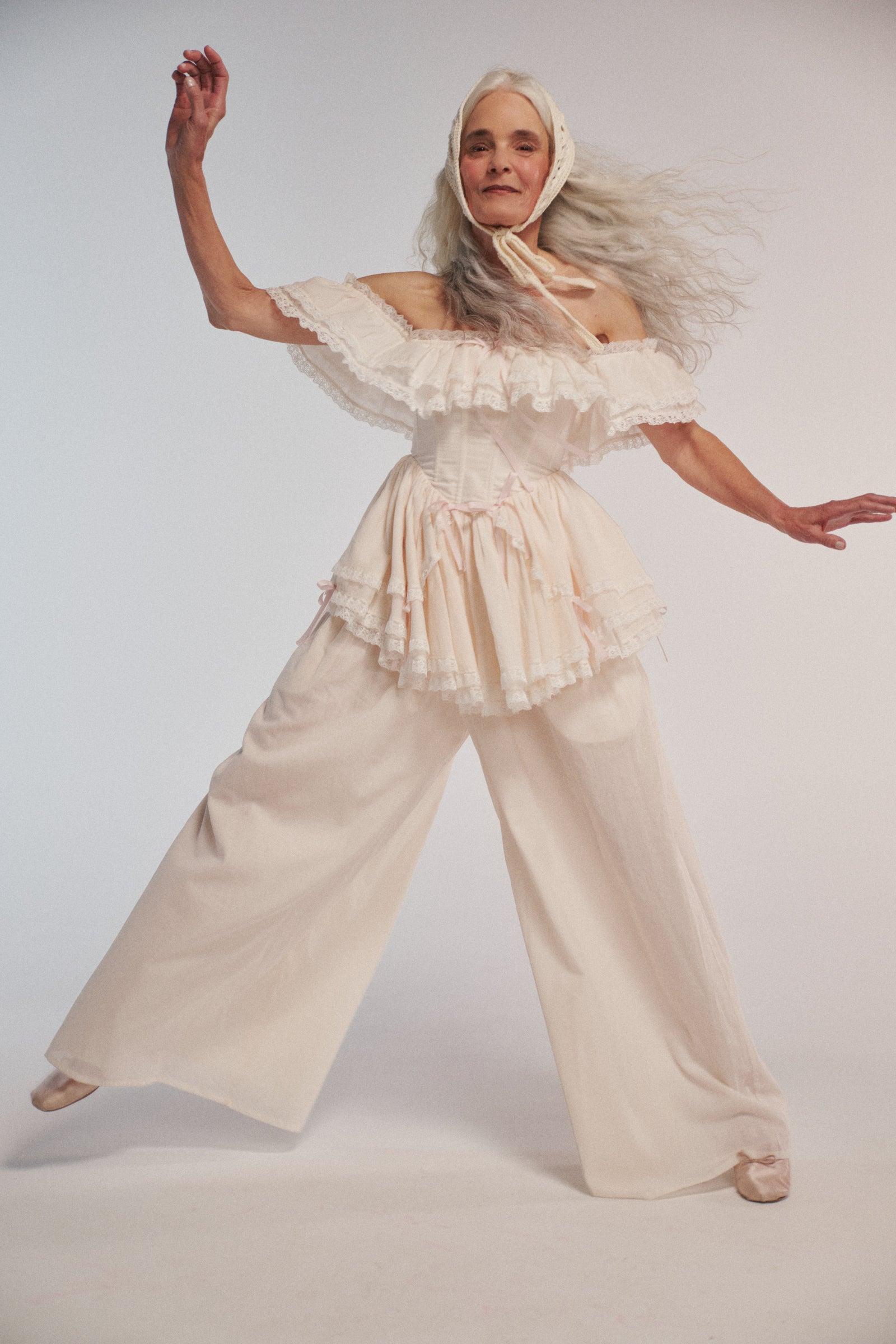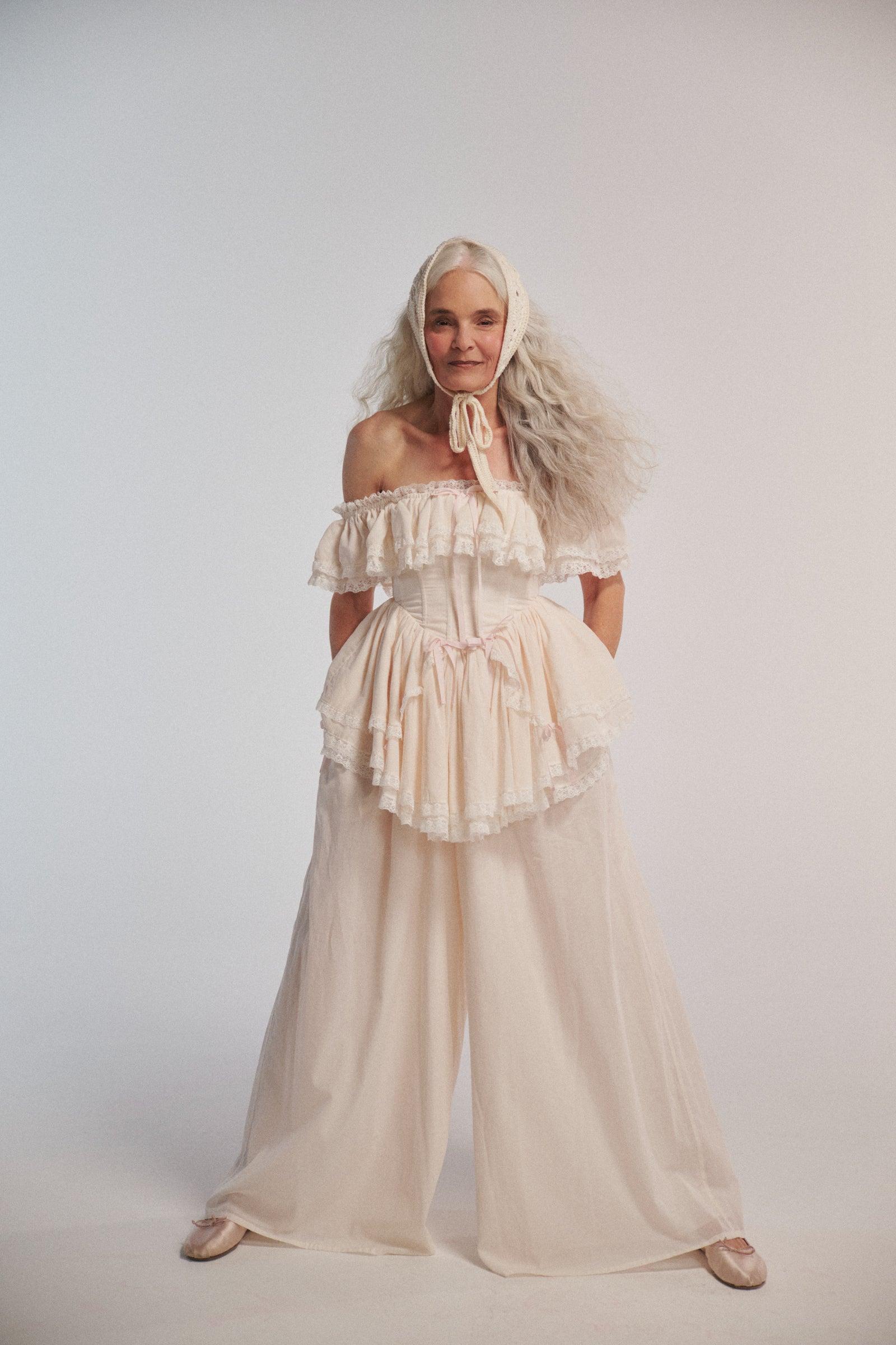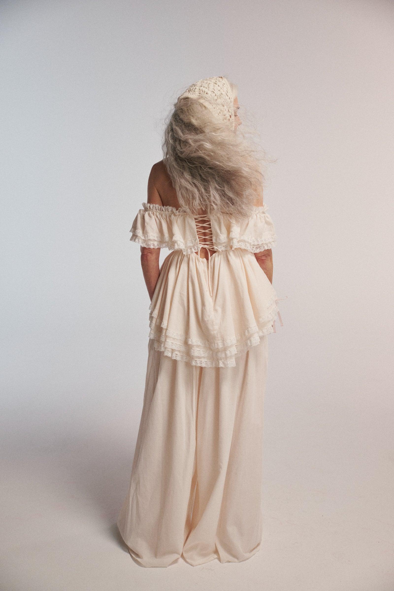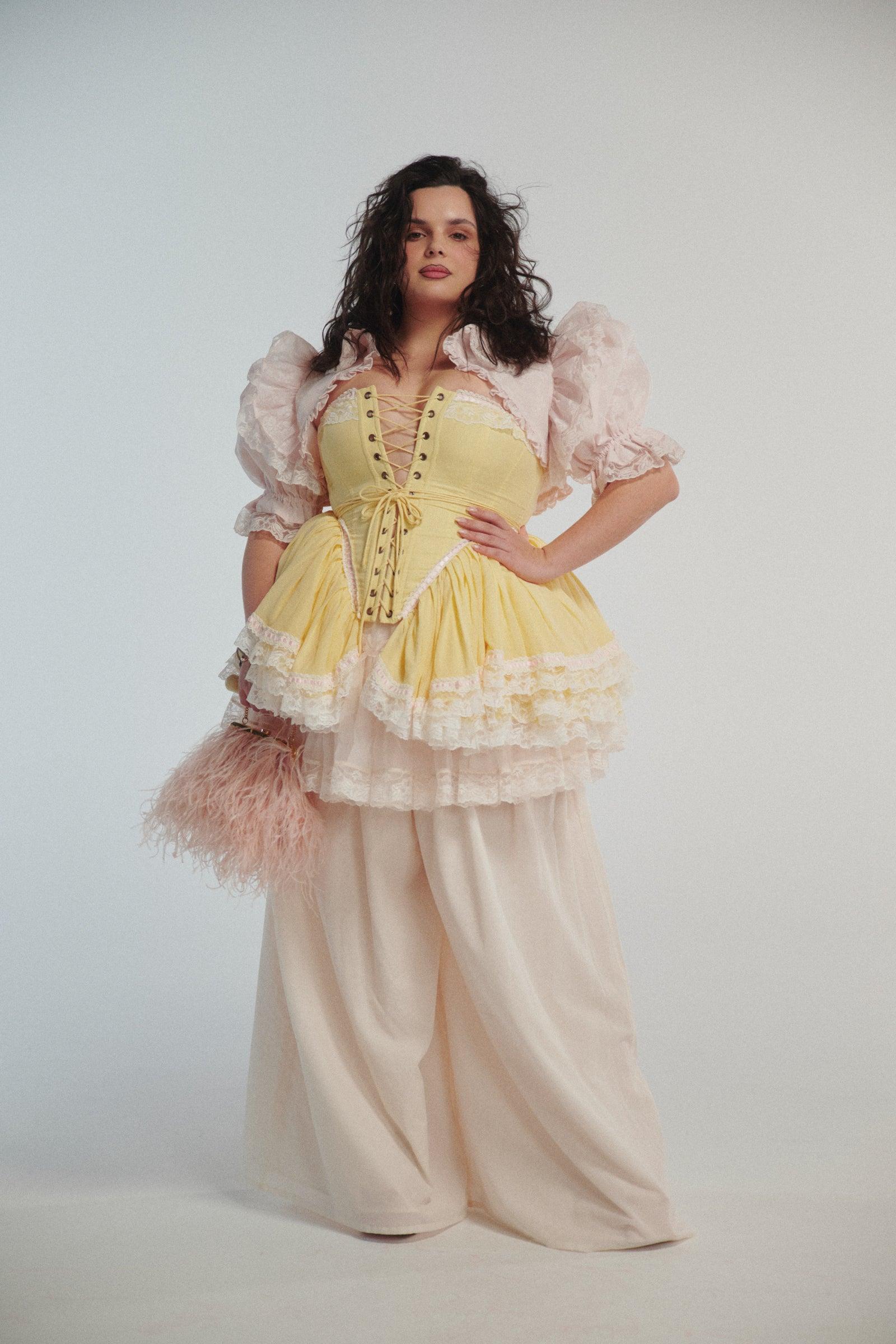Ghost pink palazzo pants in sheer cotton gauze. Wide leg, smocked waistband, effortless fit. Layer them under minis, pair them with corsets, let them flow. Styled with the Ghost Pink Hug Me Mini Dress, The Custard Victorian Corset, and the Blush Antique Heart Bolero. Sheer cotton gauze wide leg pants Stretchy, smocked waistband Pockets Lined Fabric: 100% Sheer Cotton Gauze Julie is 5’9” and a size XS in Selkie. Her measurements are 34” bust, 25” waist, 34” hip. Alicia is 5’4” and a size XXL in Selkie. Her measurements are 38” bust, 37” waist, 47” hip.