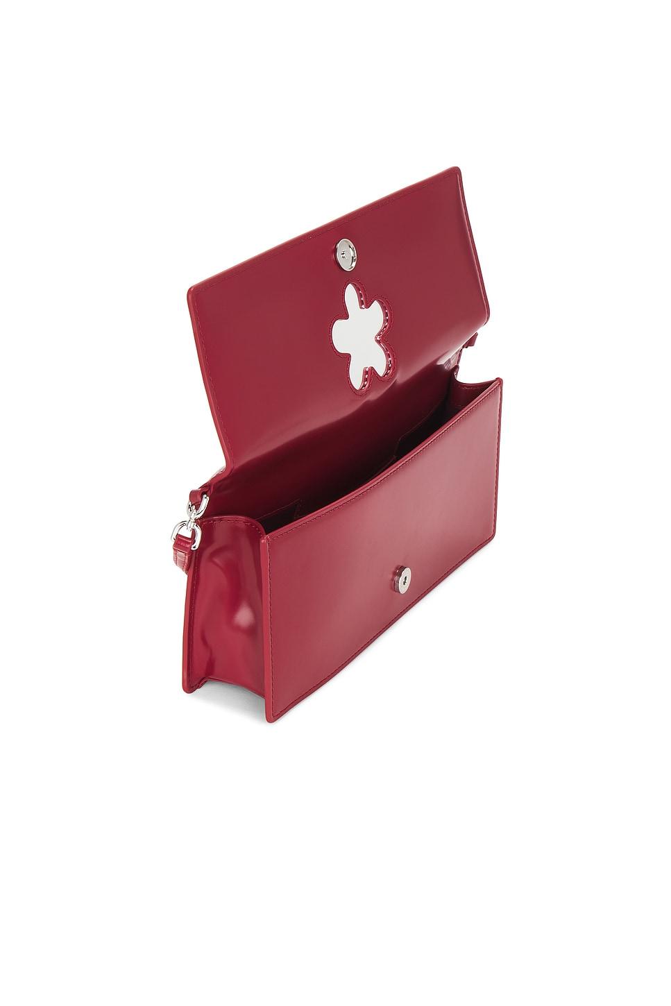 High shine Spazzolato leather exterior with faille lining. Imported. Flap top with magnetic closure with hidden daisy mirror beneath the flap. One main compartment. Interior slip pocket. Integrated and adjustable leather shoulder strap. Measures approx 10" W x 5" H x 2" DShoulder strap with a 9" drop. Revolve Style No. MARJ-WY827. Manufacturer Style No. 2F5HSH047H01-641.