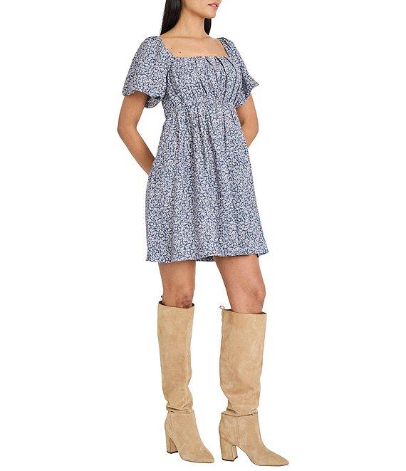 The Good Journey Printed Puff Sleeve Square Neck Mini Dress