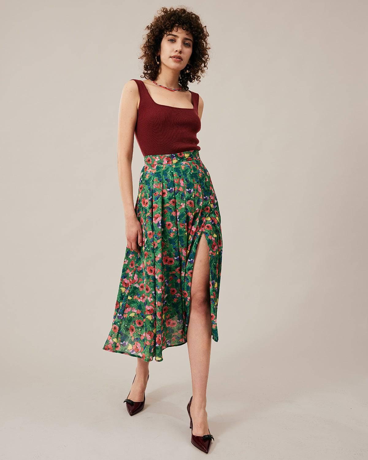 Details: - Model is 5′ 8½″, wearing a Size S Model's measurements: Bust - 31.5'', Waist - 23.6'', Hips - 35''- Floral Skirt- Side zipper- Pleated design- High side slit on the left- 5 buttons closure on the left side Fabric:This flower skirt is made of Polyester, a man-made fiber that is soft, lustrous, and dries fast. It's also durable, with its good resistance to wrinkles, stains, and sunlight.Description:Bright and dreamy. This flowers skirt is an a-line midi length with floral details to bring extra vitality. It has pleats, a fitted waist and a side zipper closure all in one. Plus, it has both button closure and a high slit on the left, adding some modern touch to you and subtly showing off your legs, quite impressive and functional.