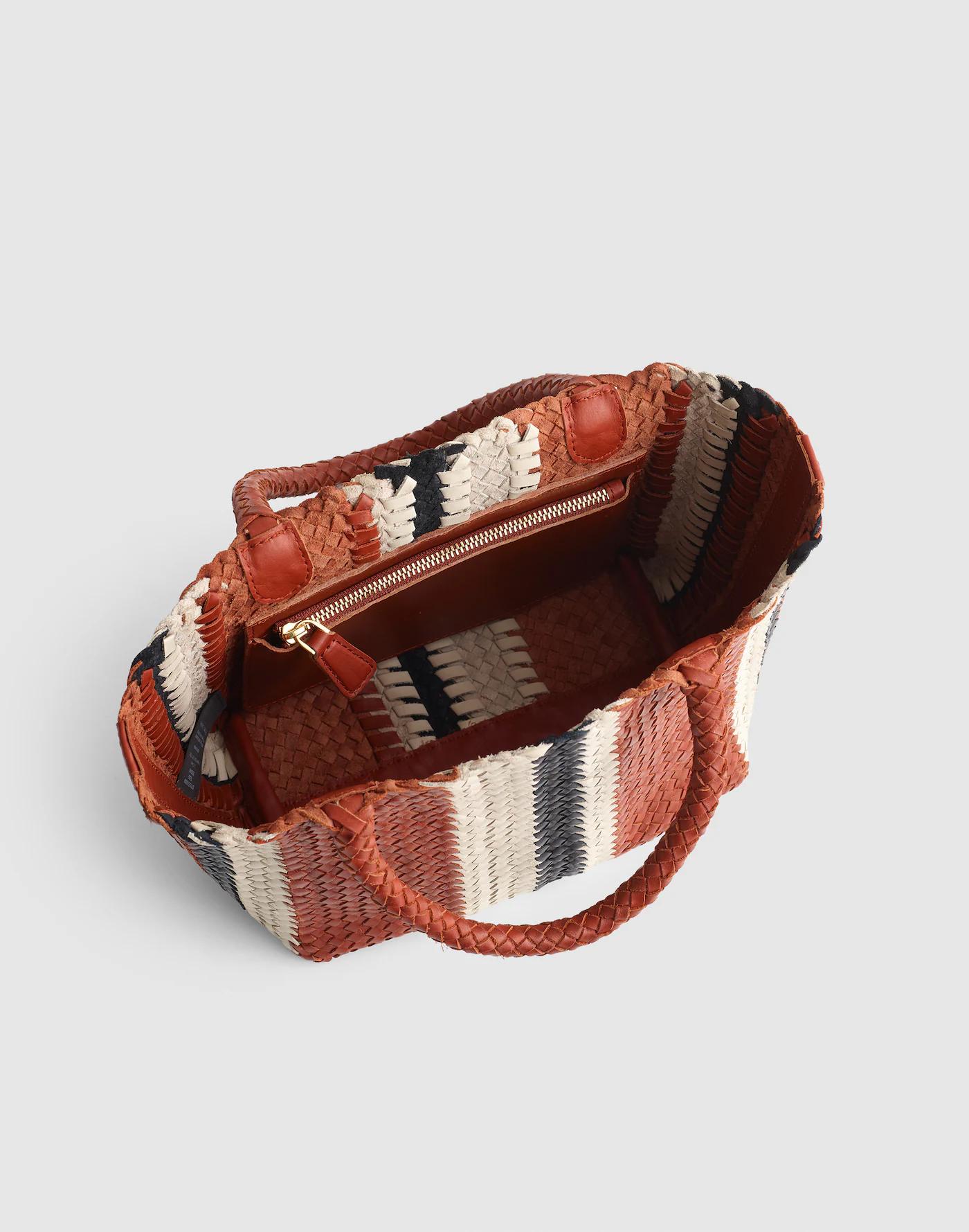 The perfect on-the-go mini bag. Handwoven with a seamless construction and featuring an irregular striped pattern, this tote is perfectly sized to hold essentials like your phone, card case, keys and lip gloss.
