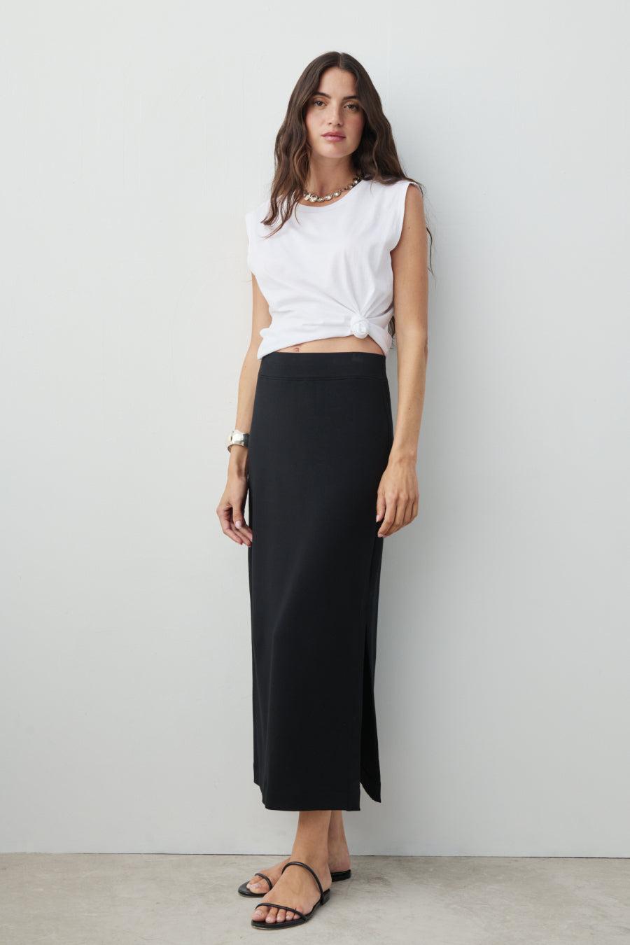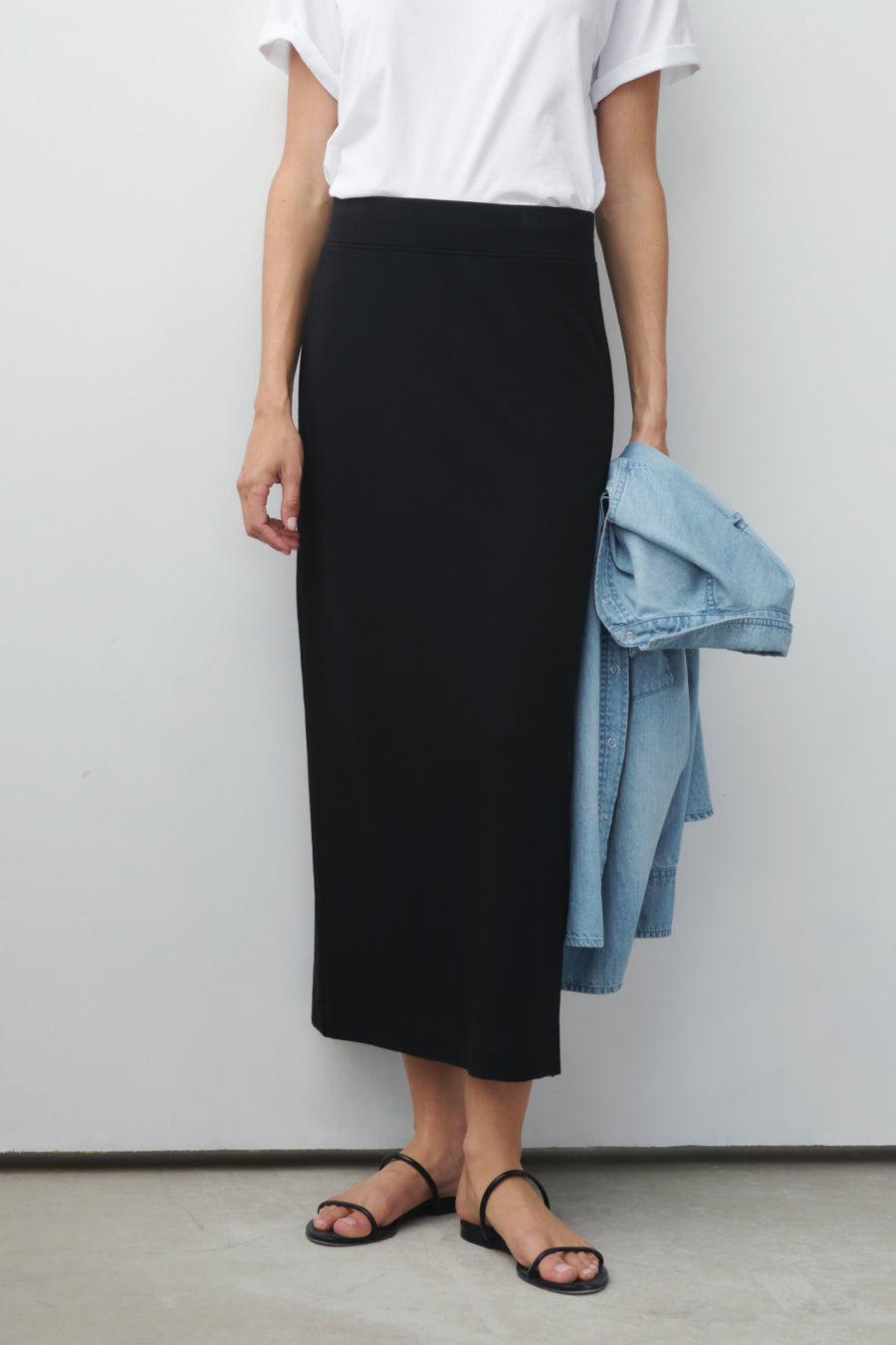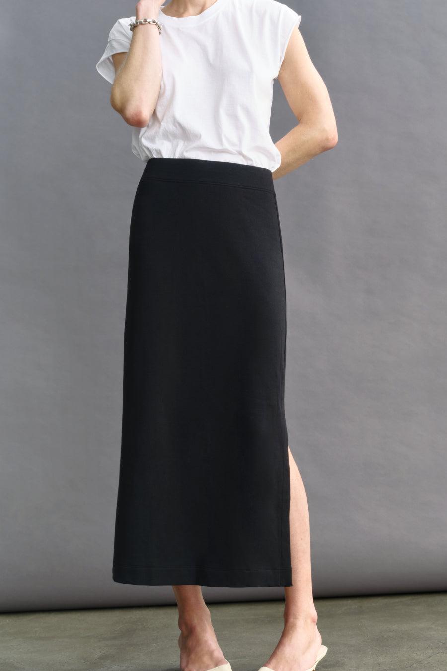 We took our bestselling, cult-favorite pair of comfy pants, The High Hopes, and turned it into one hell of a skirt. Made from our delightfully soft, stretchy, holds-you-innie blend of Peruvian Pima cotton modal and heaven. Cut with comfort and va-va-voom in mind. (She contains multitudes.) Just like our magical pants, The High Hopes skirt looks amazing with everything: every top, every shoe, every scenario. Perfect for the carry-on champion and recovering over-packer alike.
