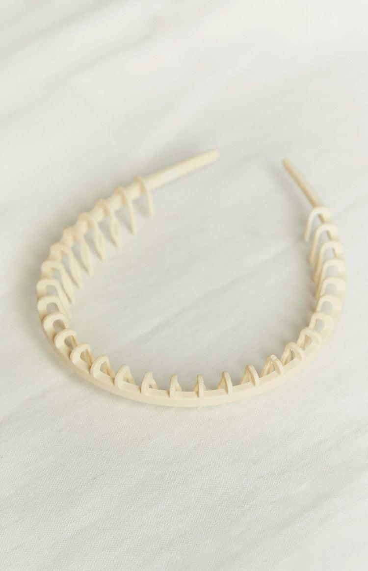 Cream Headband HOW TO STYLE: Elevate your hair with this 90s style cream headband. We love wearing ours with bouncy curled hair, a casual dress, and jewellery while shopping. FEATURES: Cream toned Spiky grips which slick hair back