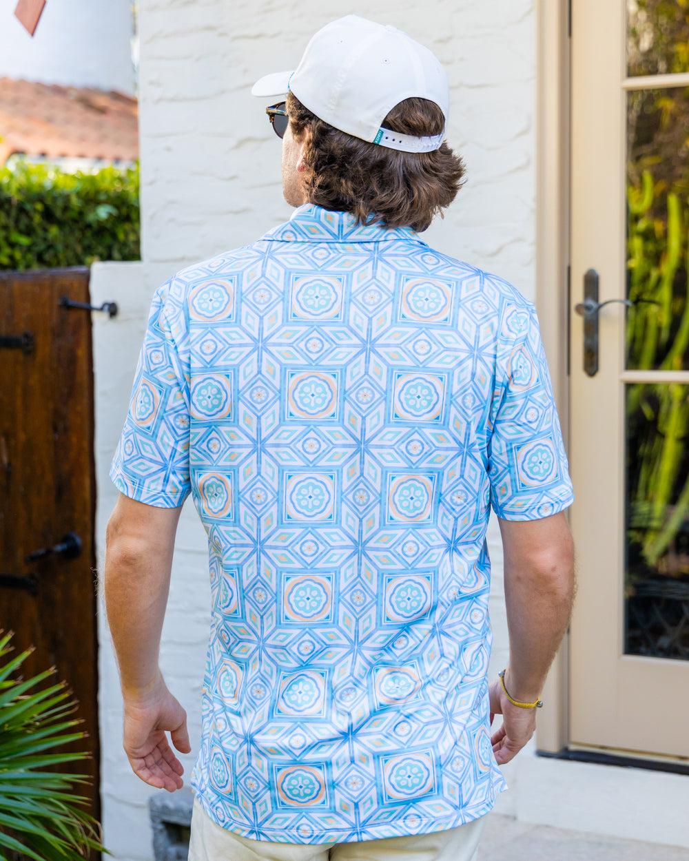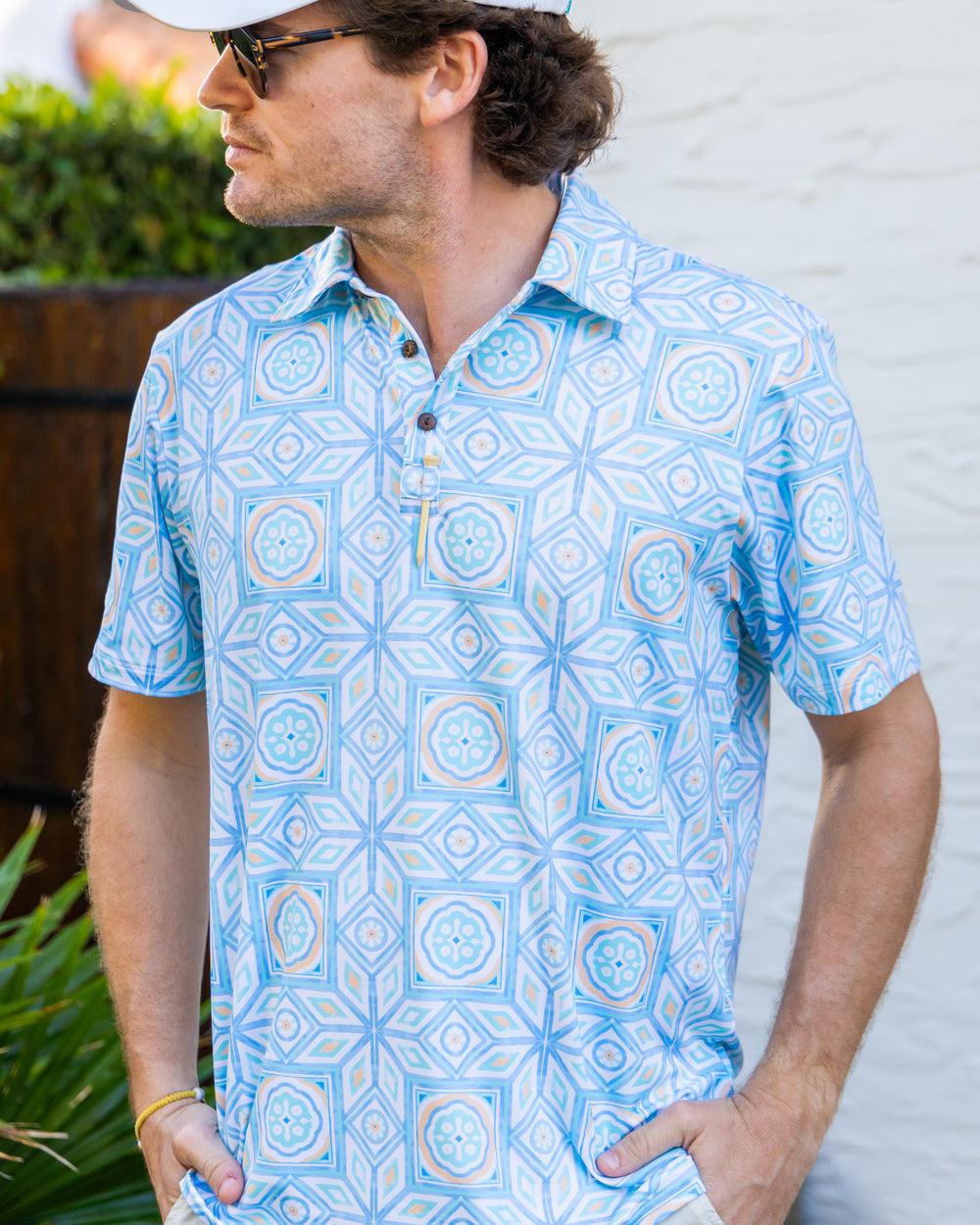 You may not want to take a break from golfing this summer, so bring the Mediterranean to you with this Mediterranean-inspired mosaic print golf shirt. Refined for those times you smoothly shoot a 76, or those times where you need to transition effortlessly from that extra round in the clubhouse to dinner.