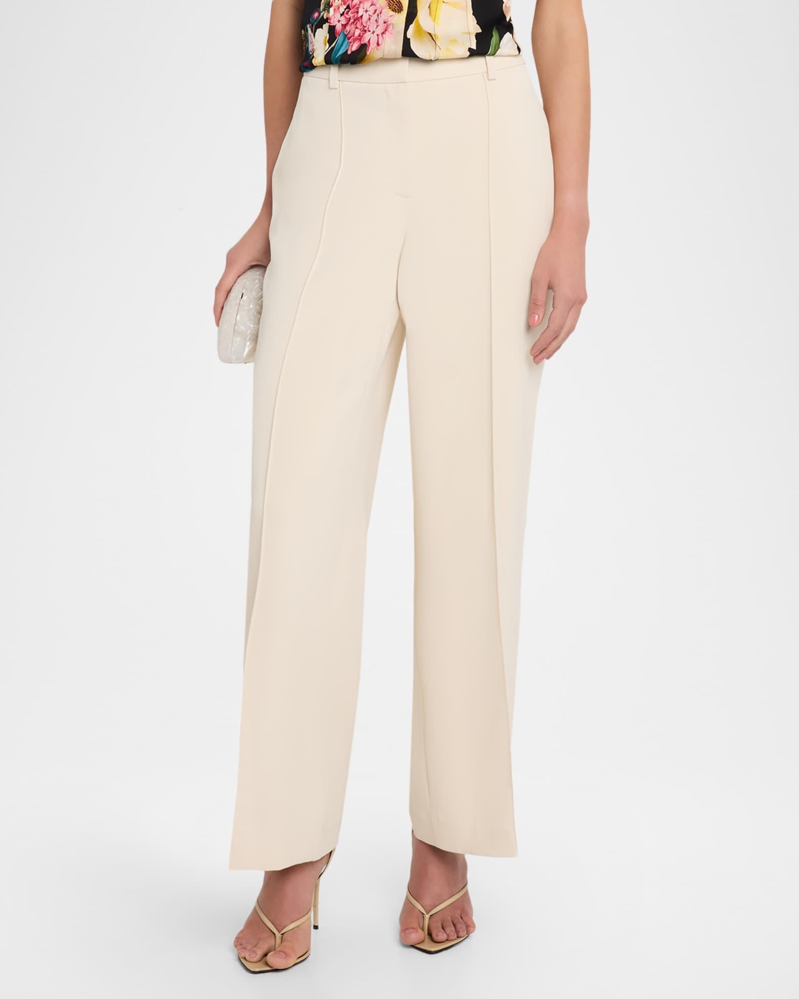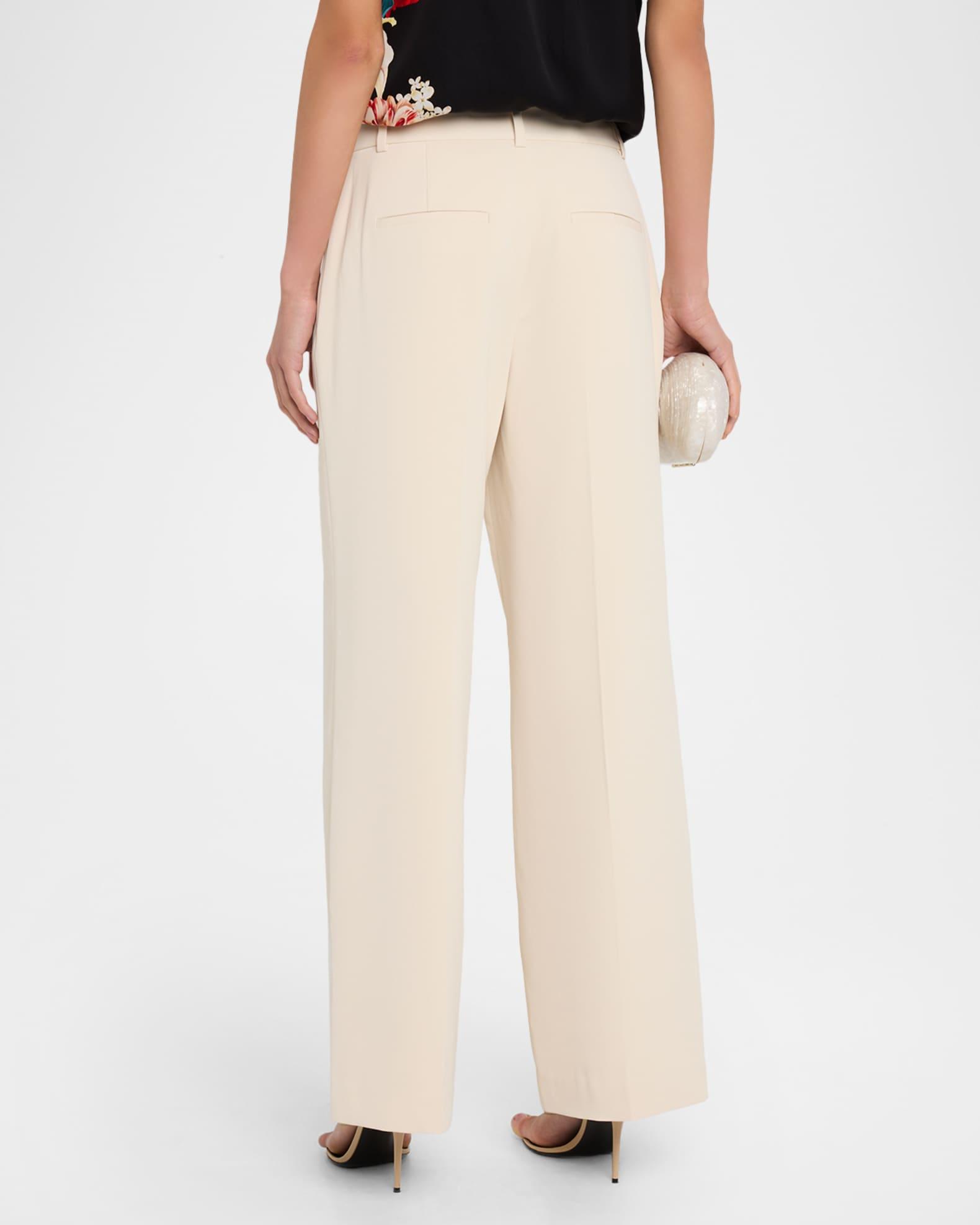 Elie Tahari "The Jana" pants finished with leg-lengthening front pintucks Approx. measurements: 30.5" inseam; 42" outseam High-rise sits high on the hips Flat front On-seam pockets Back welt pockets Full length Wide legs Zip fly; belt loops Polyester Lining: Polyester Dry clean Imported