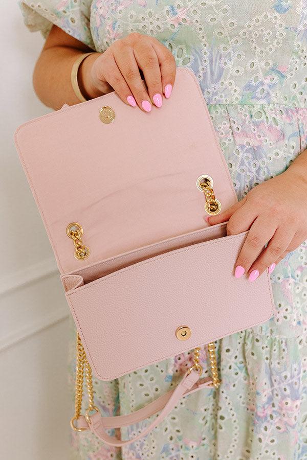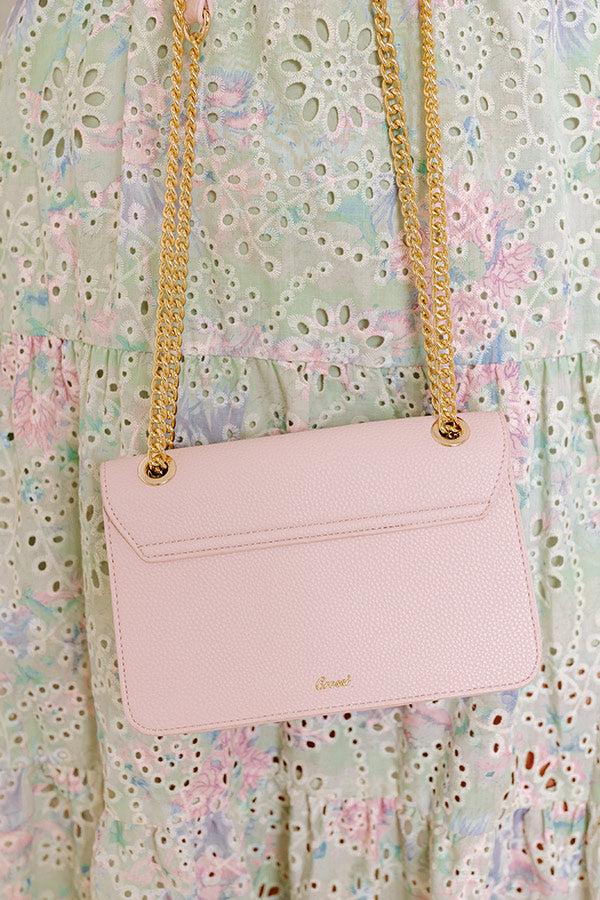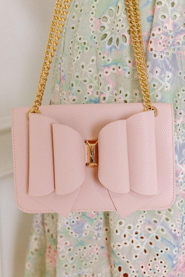- Keep your style on-trend with this cutie! - Faux leather material with a pebble texture - Gold colored metal hardware - A large bow accent on the front - Two faux leather and chain link straps that loop through and can be used as a single strap for a crossbody option - A fully lined main pouch with a zippered pocket - Flap and magnetic button closure