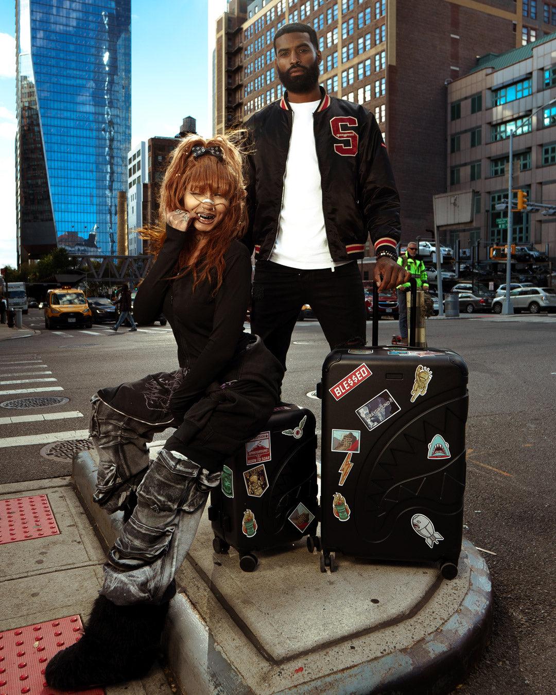 [split] The Journey Begins…Our tough yet lightweight luggage collection is produced with quality, function, and design in mind. The 100% Polycarbonate constructed shell creates superior protection for all your travel goods, while the spacious interior is equipped with multiple pockets and compression straps to keep your items secure. To guarantee efficient navigation we have designed our luggage collection to be equipped with double spinner wheels to make your journey as smooth as possible. Other features include a 100% Aluminum frame equipped with 2 TSA Security Locks as well as a comfortable scope handle to navigate the luggage with ease. FULL-SIZE LUGGAGE 29.5” PRODUCT DETAILS EXTERIOR:PATENTED SHARK SCULPTURE No. D852504, D854321Strong and Indestructible 100 % Polycarbonate ShellTSA Approved Dimensions w/ Wheels:H: 29.7” x w: 18.5“ x d: 11”*TSA Security LocksZipperless Aluminum Alloy frame4 Dual Spinning Recessed WheelsTelescoping Adjustable Handle HeightINTERIOR: Multiple Pockets and Compartments for Maximum OrganizationMoney Print Satin LiningMesh Organizer PocketFastening StrapsNylon Zippers with Metal Hardware Sprayground products are rigorously tested to ensure that the travel products you trust meet stringent standards. Consequently, if a problem occurs with this Sprayground luggage and the problem is caused by manufacturing defects in material and workmanship, Sprayground will, in its discretion, either fix or replace the luggage in accordance with the warranty terms and conditions stated herein. The warranty provided for herein applies only to the first purchaser or gift recipient of the luggage for a period of one year starting from the date this luggage was purchased. This warranty covers only manufacturing defects and does not cover any damage caused by misuse such as transportation of unusual items, neglect, accidents, abrasion, exposure to extreme temperatures, solvents, acids, water, normal wear and tear or transport damage. The warranty provided herein is limited to the value of the Product. Manufacturing specifications are subject to change without notice. Product is made in limited edition production and if product needs to be replaced and it is not available anymore, then either a store credit will be given if the product can not be replaced.*TSA locks are intended only to prevent accidental opening and cannot necessarily prevent theft of the Product or its contents, breakage or entry by airline or airport personnel or governmental authorities. Inspect your Product immediately after handling by anyone other than you. If damaged in transit, submit a claim to the transit company which is insured against damaging your product at the place of arrival, if possible, before clearing customs. tsa lock instructions care instructions lifetime warranty