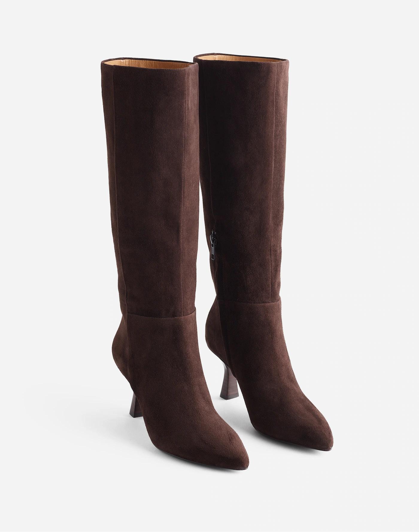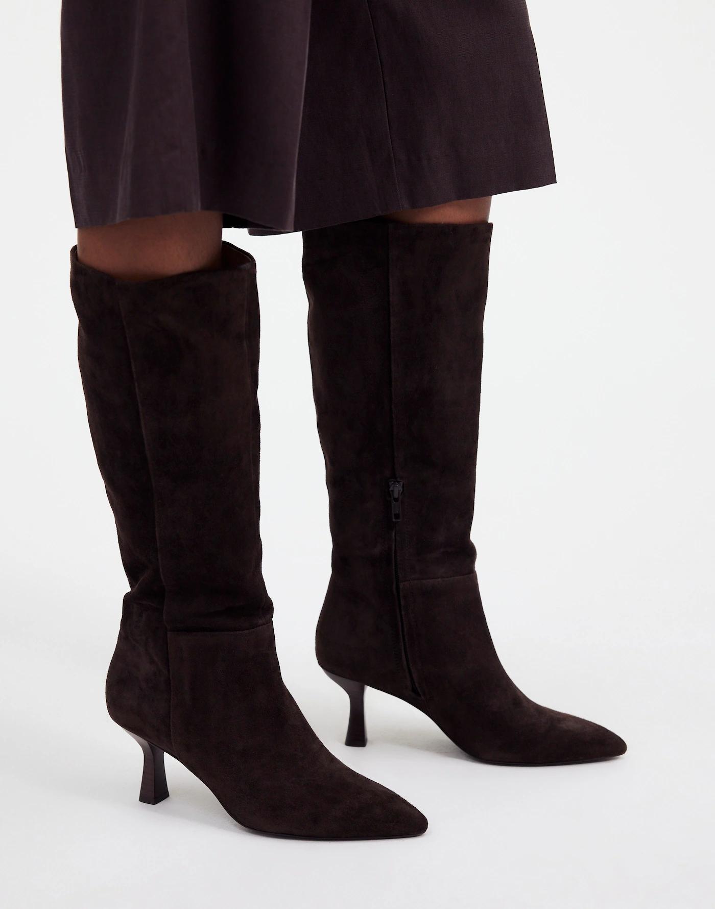 With a chic pointed toe, stretchy back and modern sculpted heel, these suede knee-high boots make a subtle statement paired with everything from a swishy maxi to structured trousers. Plus, our MWL Cloudlift Lite padding makes it feel like you're walking on a...well, you know.