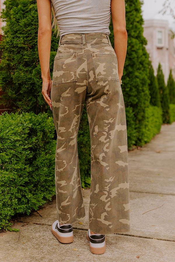 - Amp up your style with a bold, laid-back look! These trendy camo print jeans, with their raw hems and wide legs, are perfect for creating effortlessly cool looks.