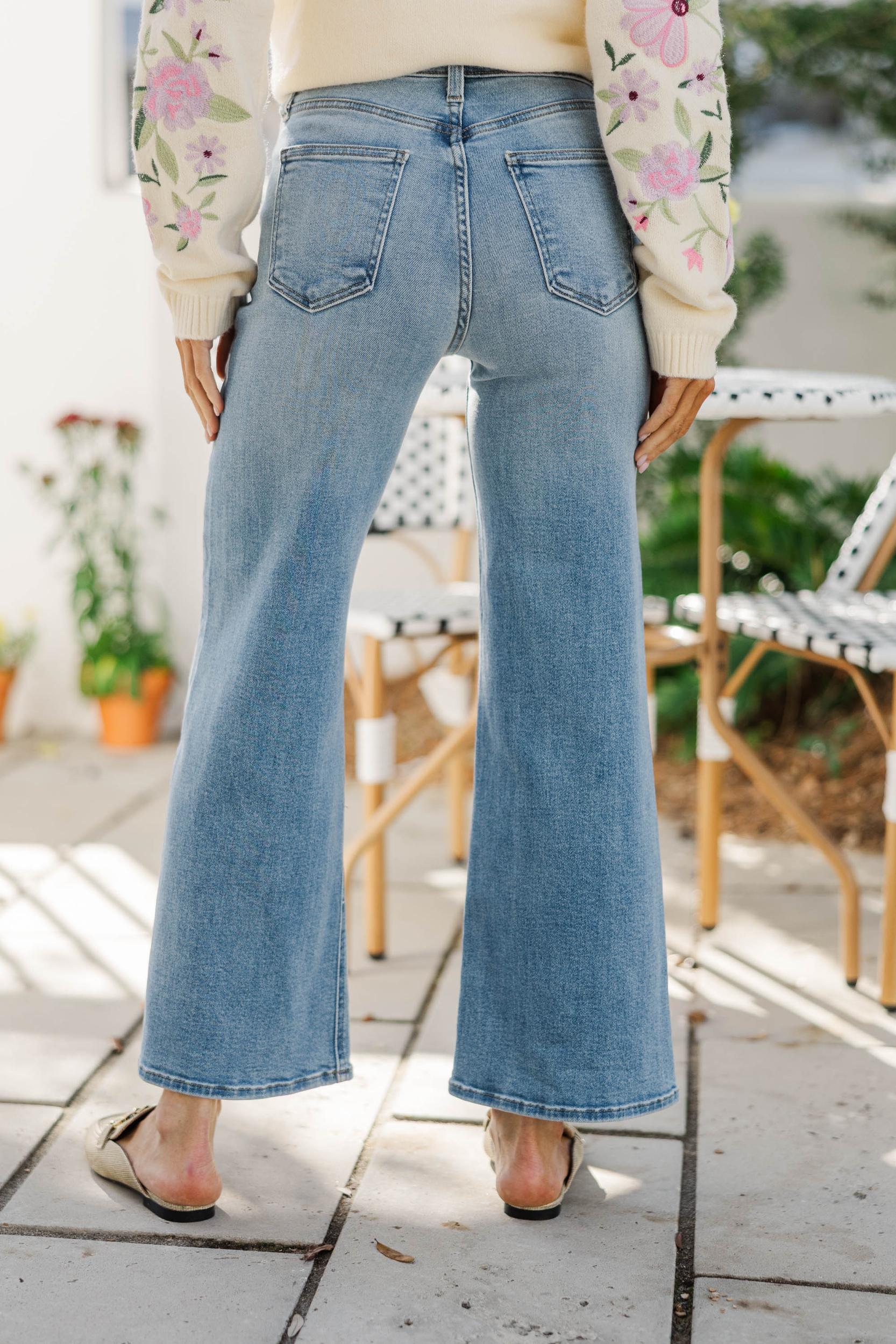 These jeans bring an effortless, laid-back feel with a flattering wide leg silhouette and easy everyday fit. The light wash makes them perfect for pairing with everything from cozy knits to breezy blouses. Finished with classic denim details, they’re a timeless staple you’ll reach for again and again. high rise fit wide leg silhouette clean finished hemline classic design slight stretch Baileigh is wearing the small.