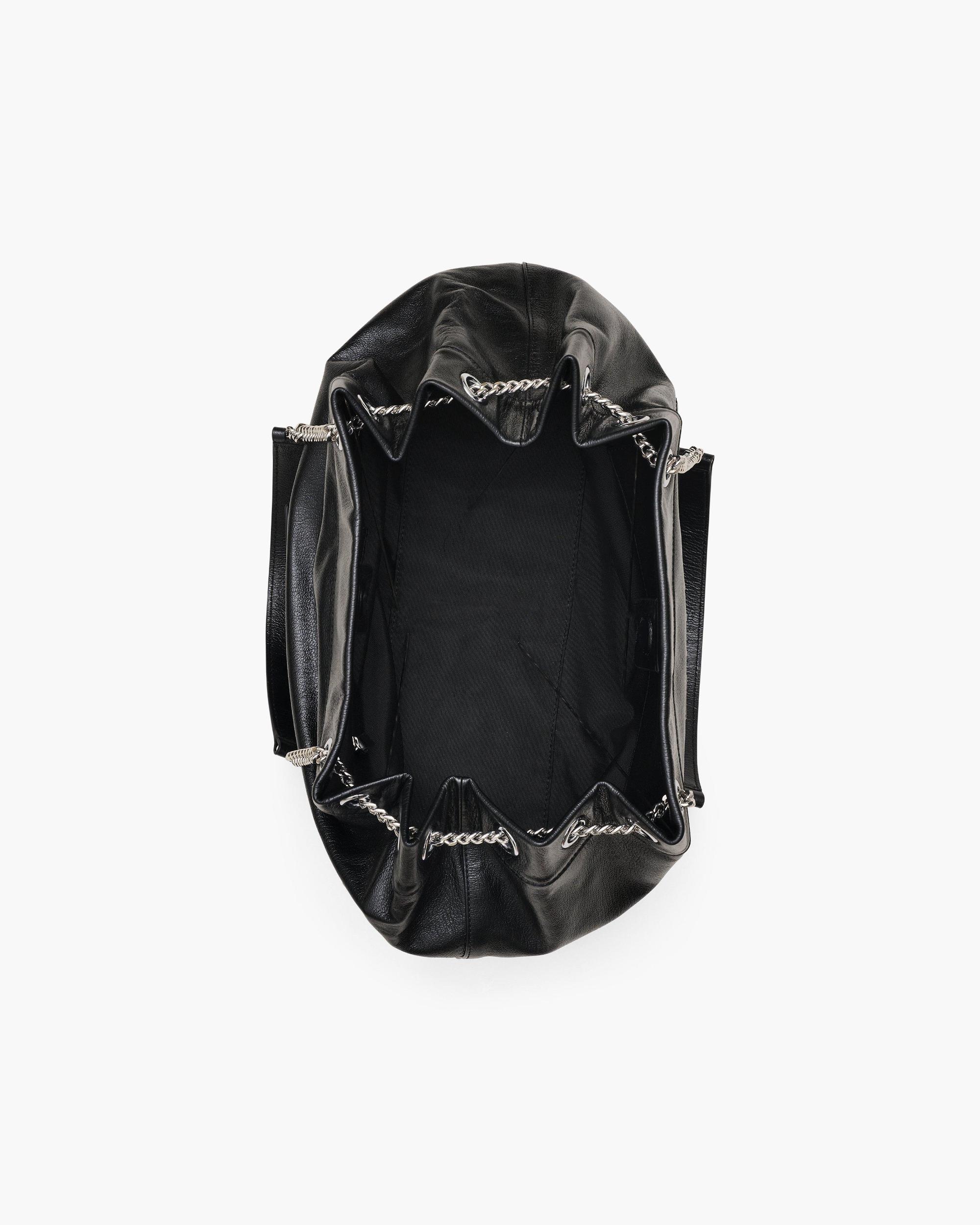 A highly stylized iteration of our iconic runway-to-reality Sack Bag, The Large Chain Sack introduces fresh detailing to our beloved carryall silhouette. Crafted in premium full-grain leather, this instant-icon features a pull-through leather-handled chain strap, a secure magnetic closure and internal storage for optimized effortlessness. Featuring our signature debossed namesake branding, this bag is everything you love about The Sack and more. Shop Marc Jacobs The Large Chain Sack