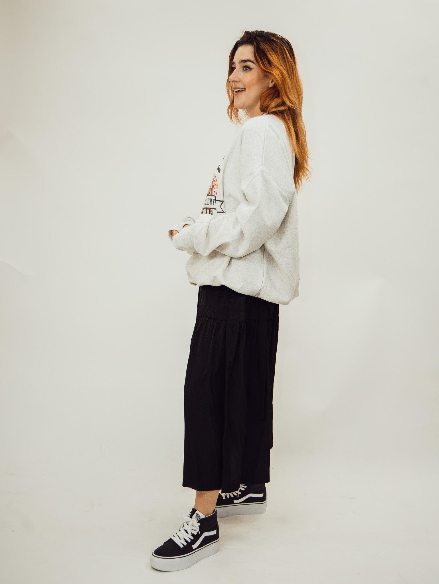 The luxurious Jump Jumper keeps a casual vibe with a soft knit, while mod details like the dropped shoulder and chunky cuffs with thumbholes create an effortlessly elevated look for sneakers, boots, or heels. The 60's inspired hand dye gives this garment a refined look with a premium vintage vibe and feel. Printed with an eco-friendly water based ink for a super soft invisible hand.