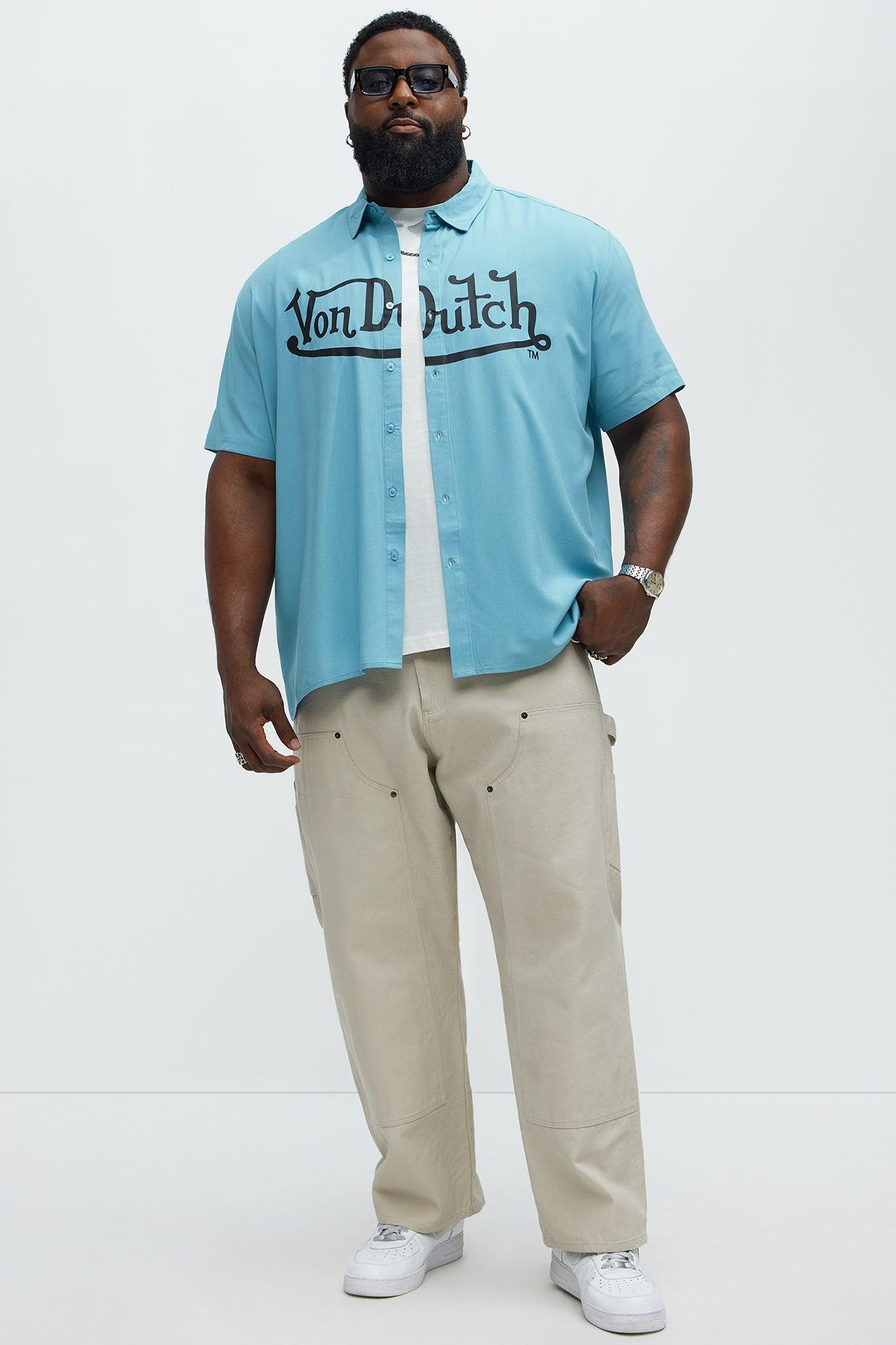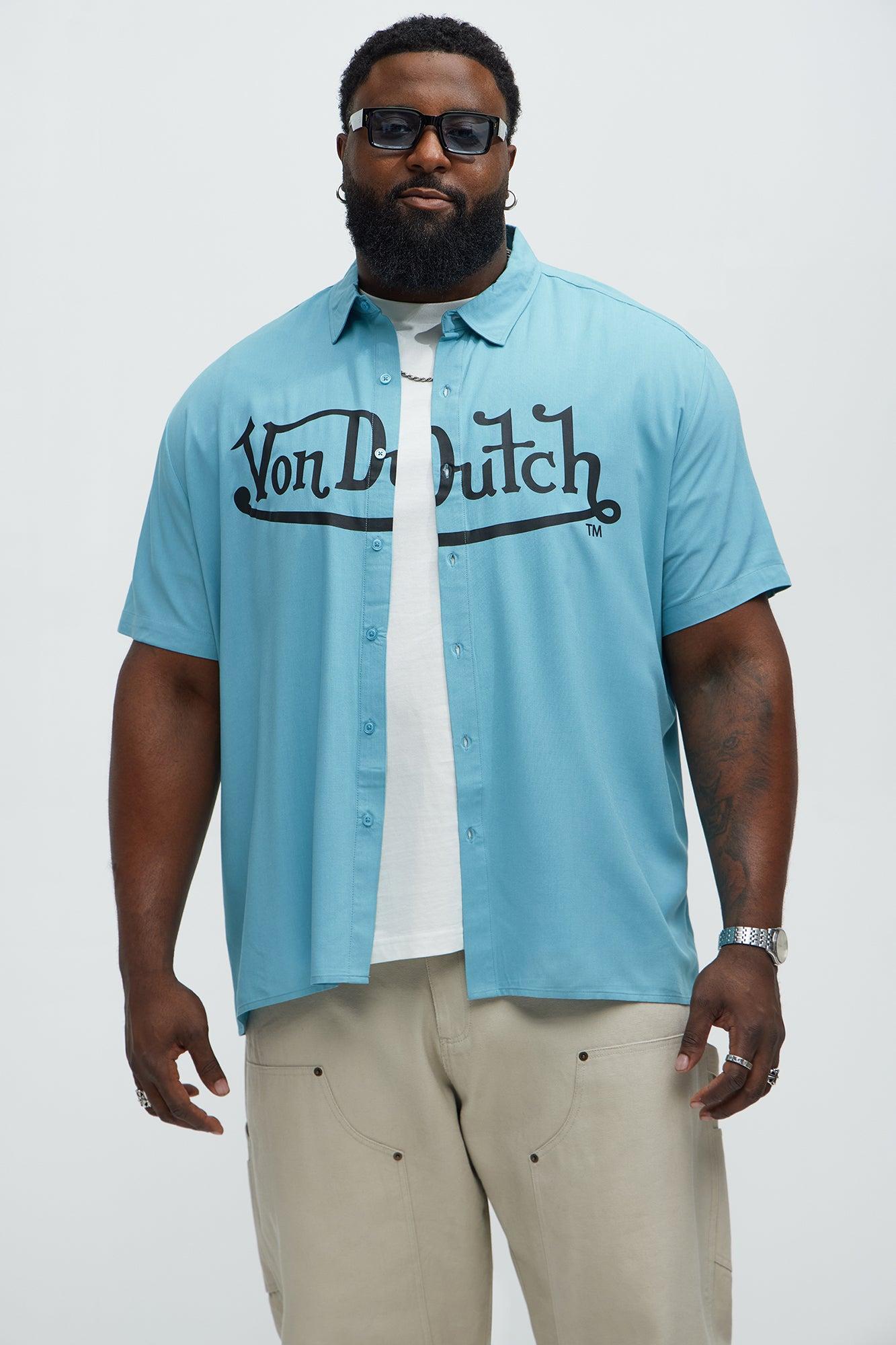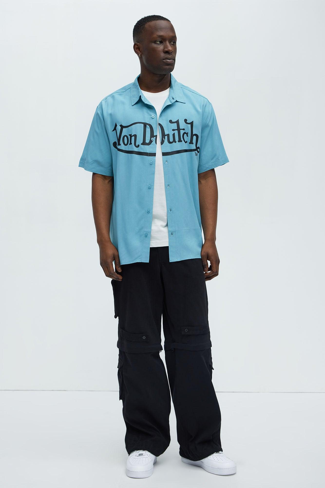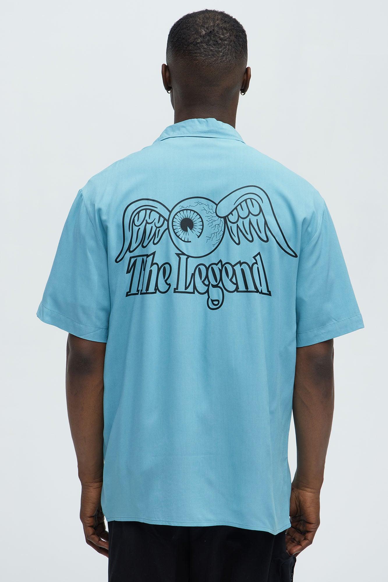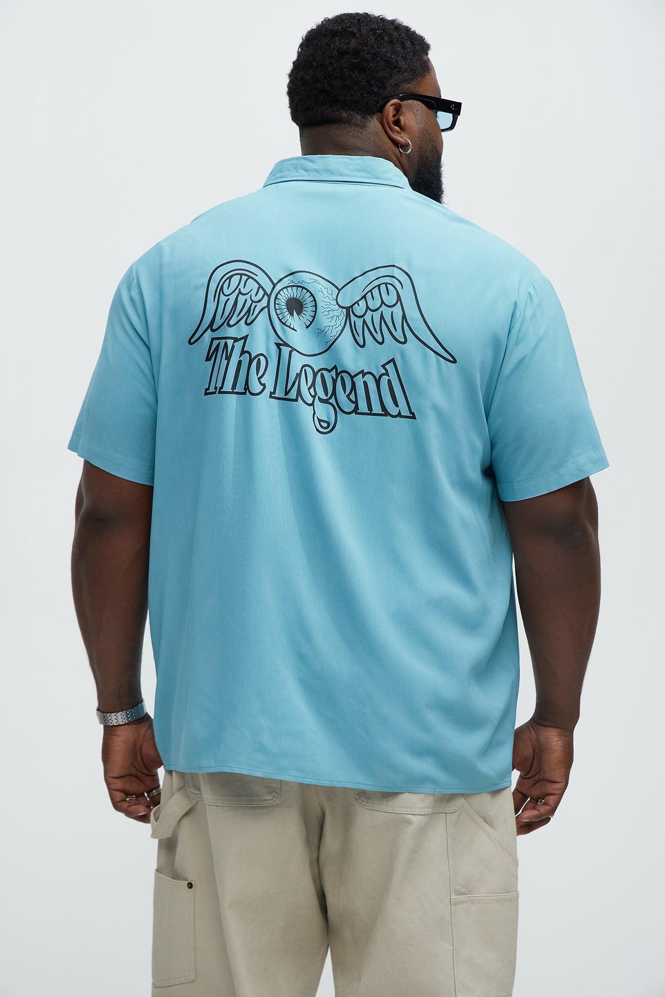 Available In Blue. Fold Down Collar Front Button closure Short Sleeves Front Graphic Back Graphic 100% Rayon Disclaimer: Due To The Printing Process A Difference In Saturation May Occur. Each Garment Is Unique. Print Placement Will Vary. Imported