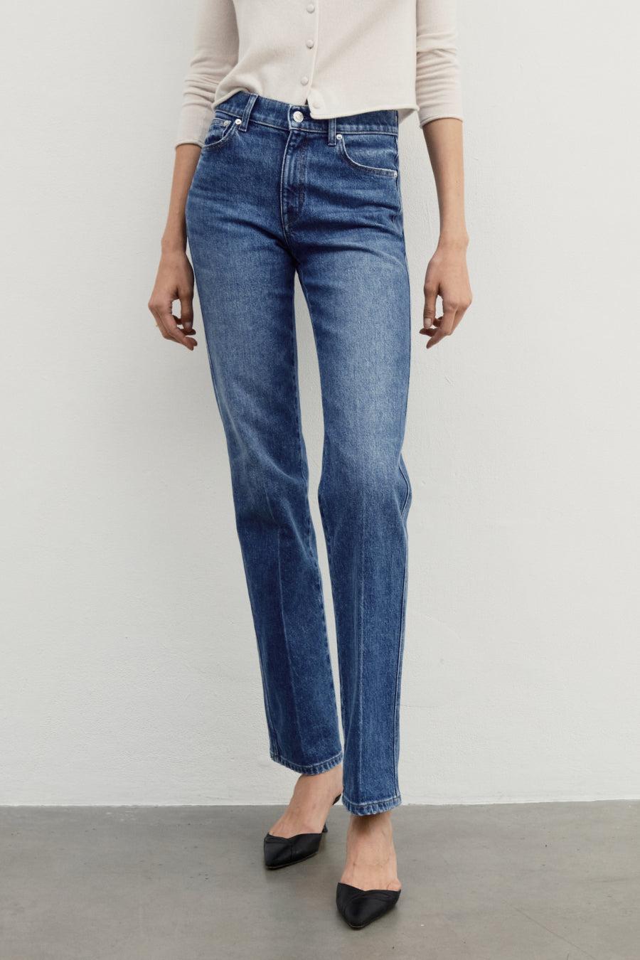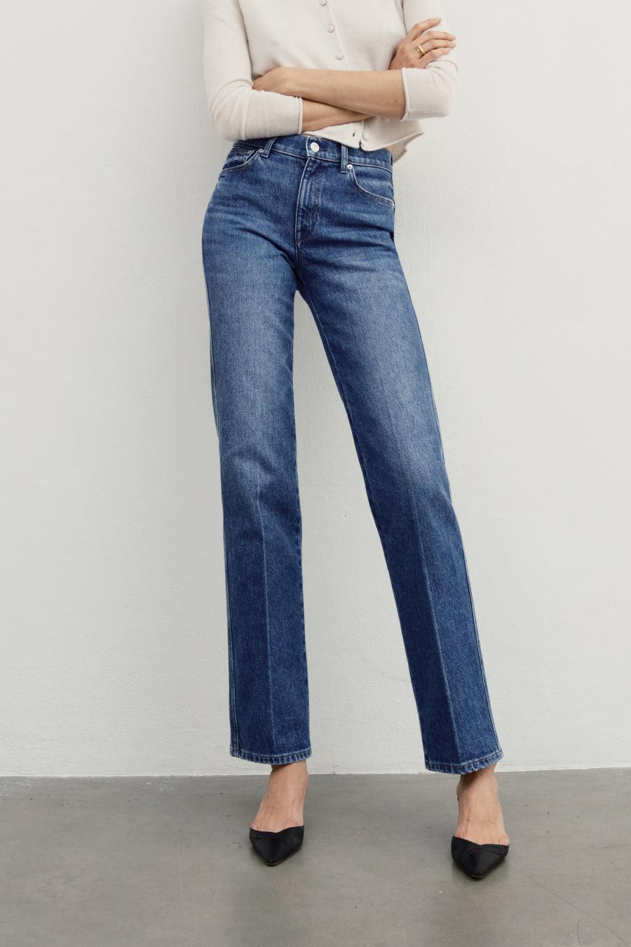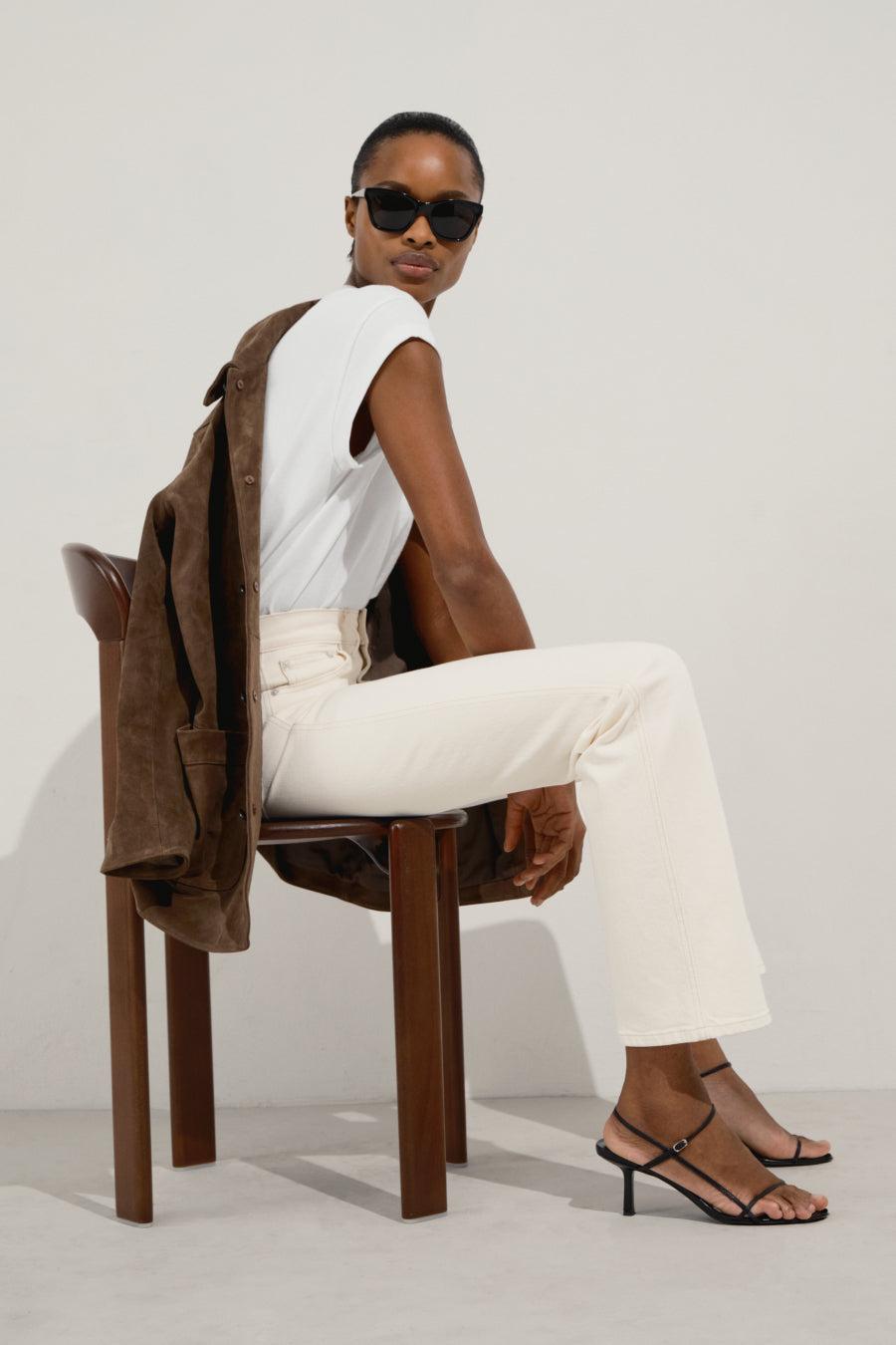 The pair everybody's talking about. Moderate straight-leg with a waist-snatching high rise. Holds you in, lifts you up. Tuck in one of our button downs for an especially chic look. Proudly made in L.A.
