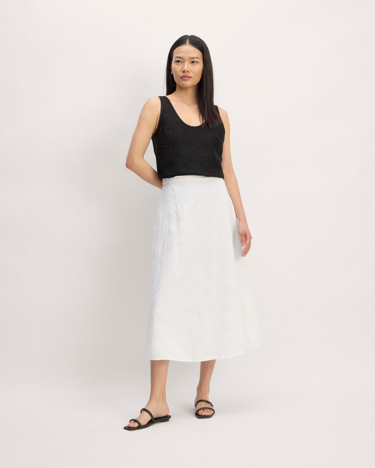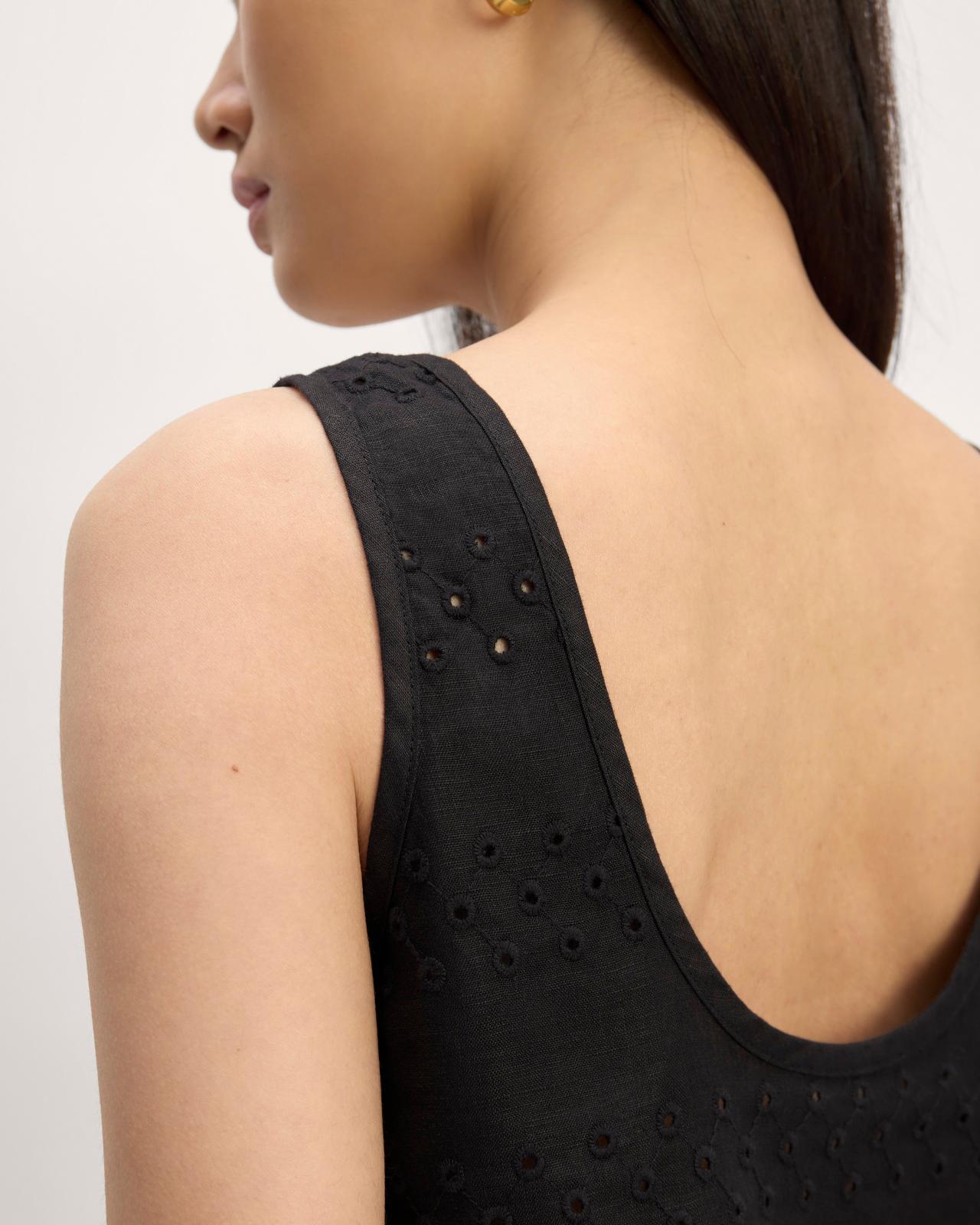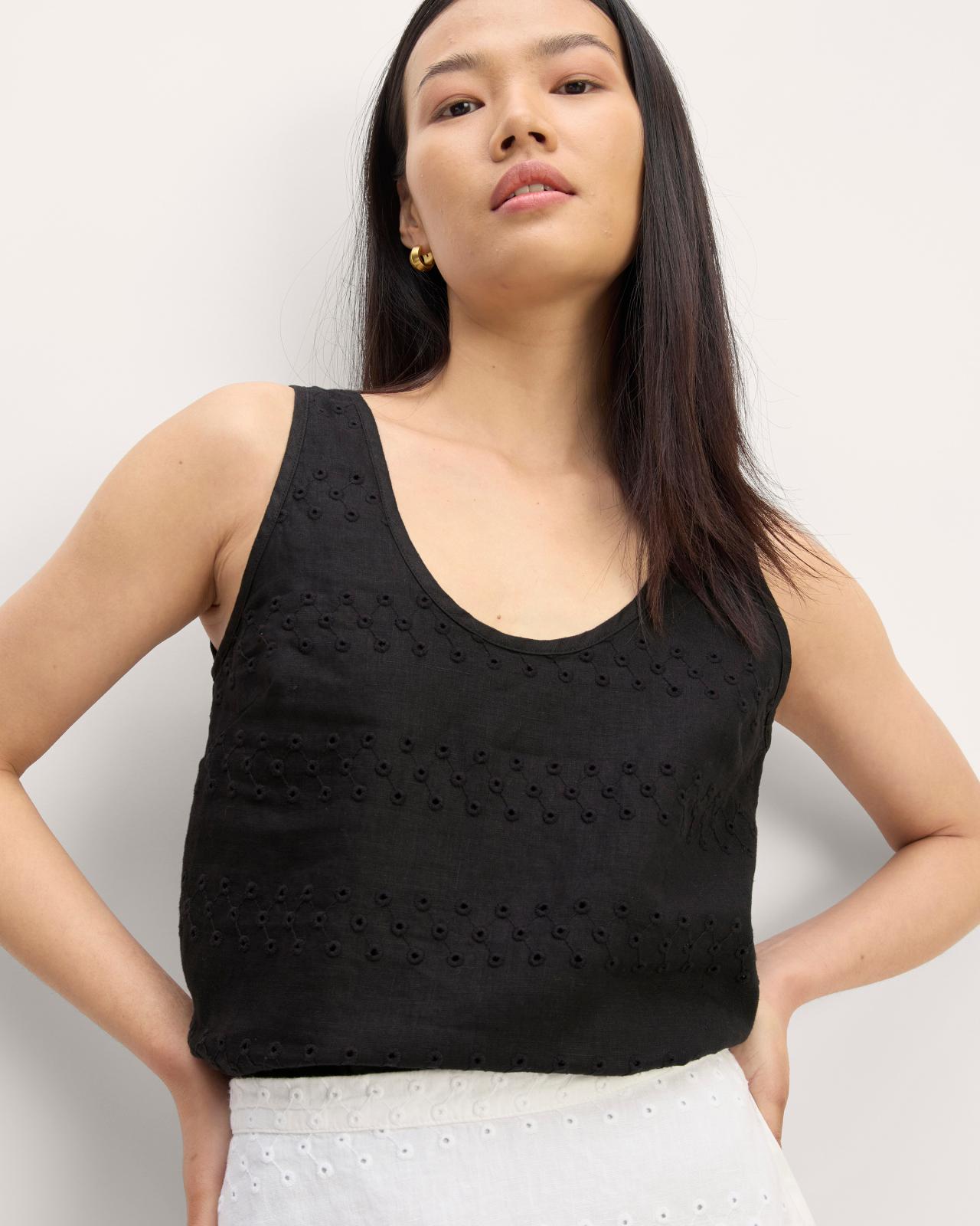 About This Style. This piece features features a double scoop neck with a relaxed fit. Womens Linen Eyelet Scoop-Neck Tank by Everlane in Black Eyelet, Size 16