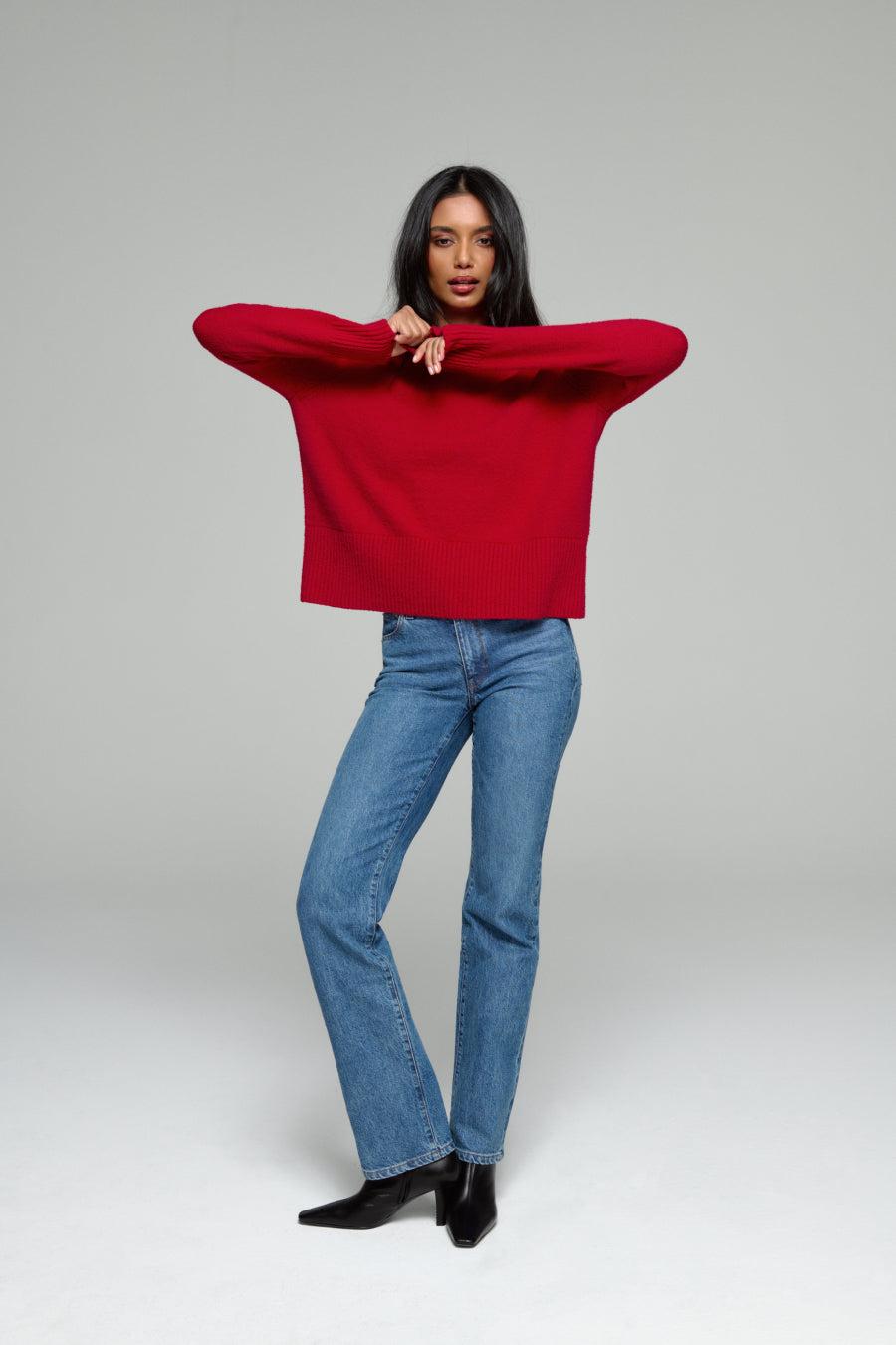 Softest sweater in the world. Knit from our cult classic Softie Yarn™: a bouncy, lofty Italian cotton blend. Machine washable–stays plush no matter how often you throw it in. Designed with a slim sleeve (great for coat season) and a swingy body with an extra wide ribbed hem. Hits that ideal spot right at the waistband of our favorite denim fits.