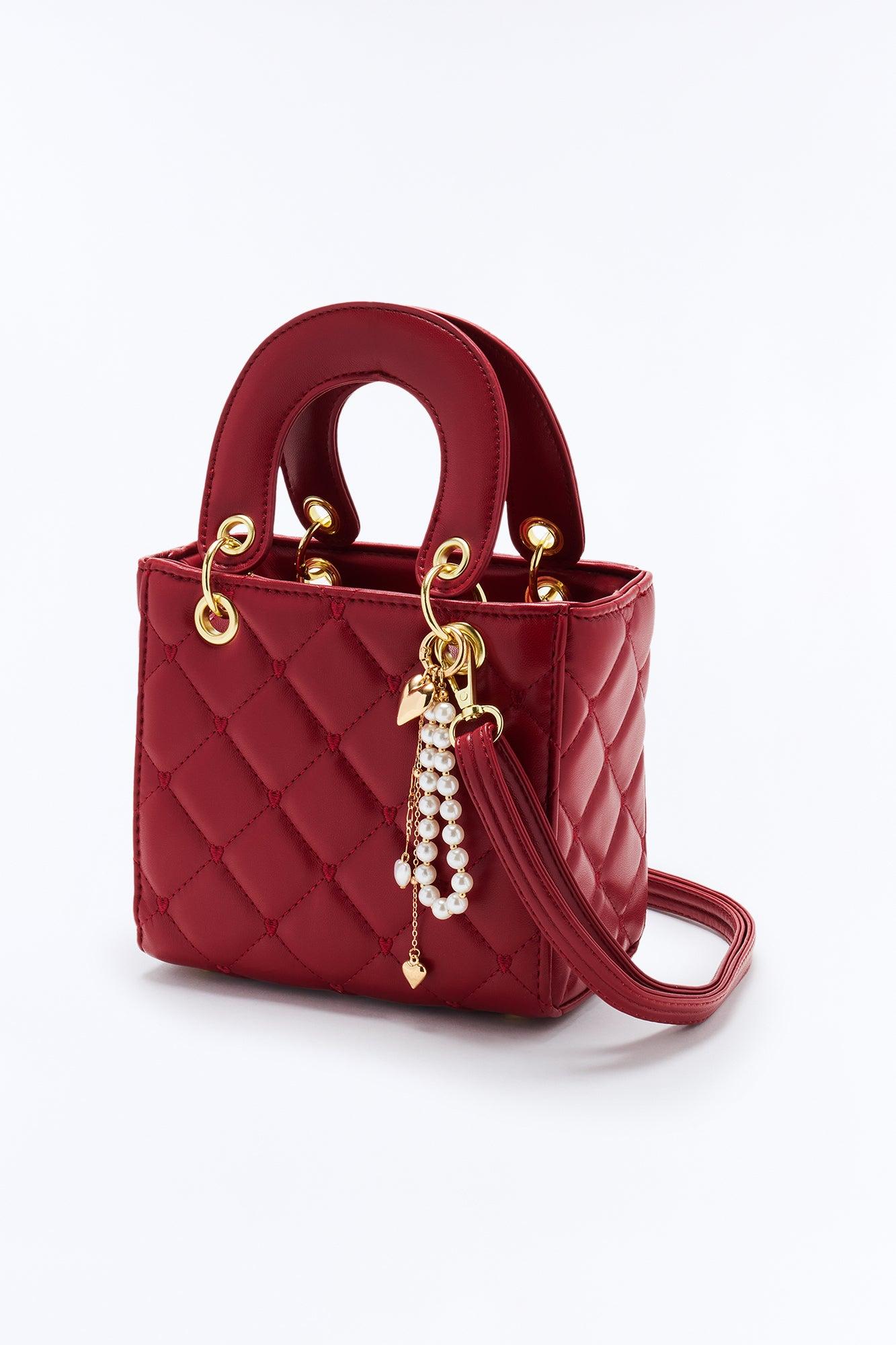 Available In Red. Satchel Bag Top Zip Closure Faux Leather Material Quilted Pattern Hardware Charm Detail Dimensions: 8.25"L x 2.95"D x 10.25"H Shell: 100% Polyurethane Lining:100% Polyester Imported