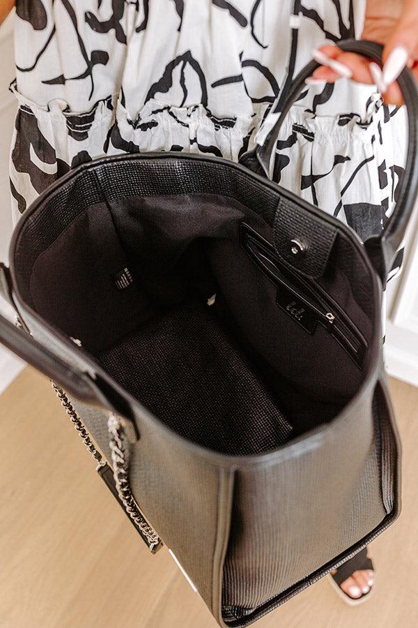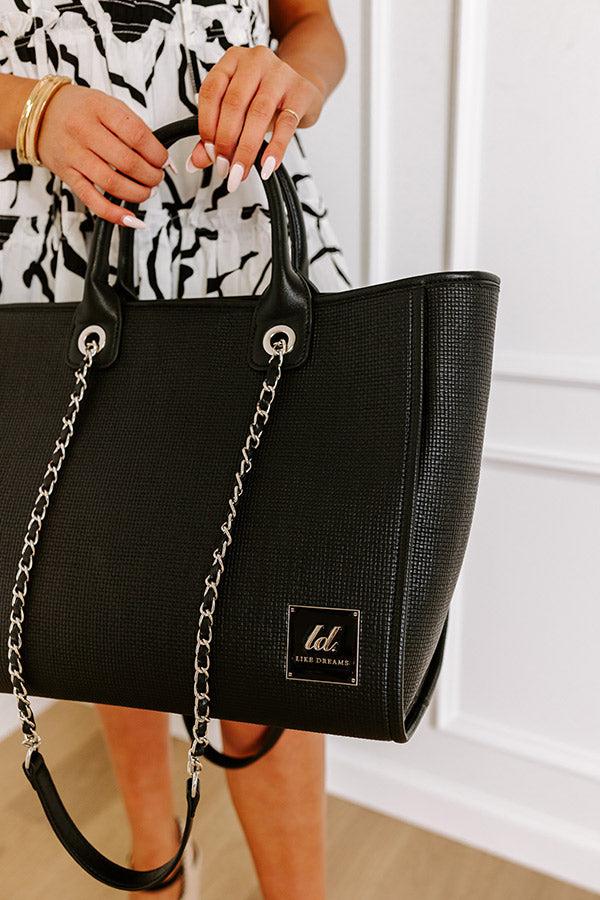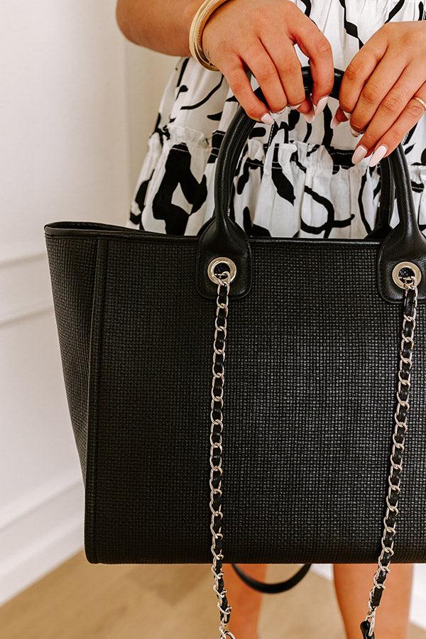 - Add a chic detail to your look with this spacious faux leather tote! - Woven textured faux leather material - Silver accents - Two handles as well as two faux leather and chain link shoulder straps - Magnetic button closure - A fully lined spacious interior featuring a zippered pocket as well as a separate zip closure pouch that clips on securely