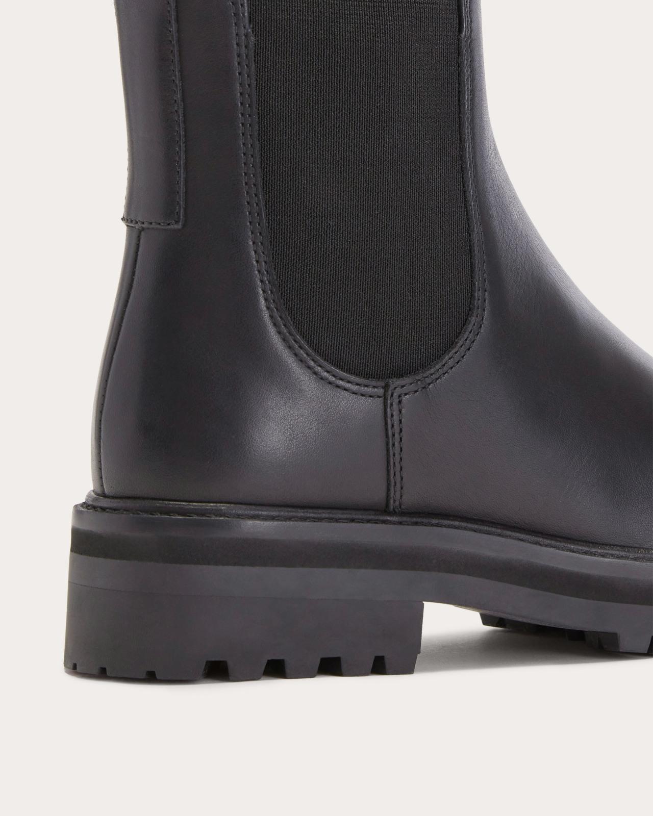 A Chelsea boot with a punk rock solepun intended. Designed with a chunky lug outsole this platform style adds a cool attitude to any look. Extra Bonus Points: It has pull-on tabs for easy on-off and we treated the leather with water-resistant spray so a light drizzle wont rain on your parade. This boot uses leather sourced from a tannery rated Gold by the Leather Working Group (LWG)the highest rating a tannery can receive for demonstrating best practices in environmental compliance and performance capabilities. Lug Chelsea Boot by Everlane in Black, Size 9.5
