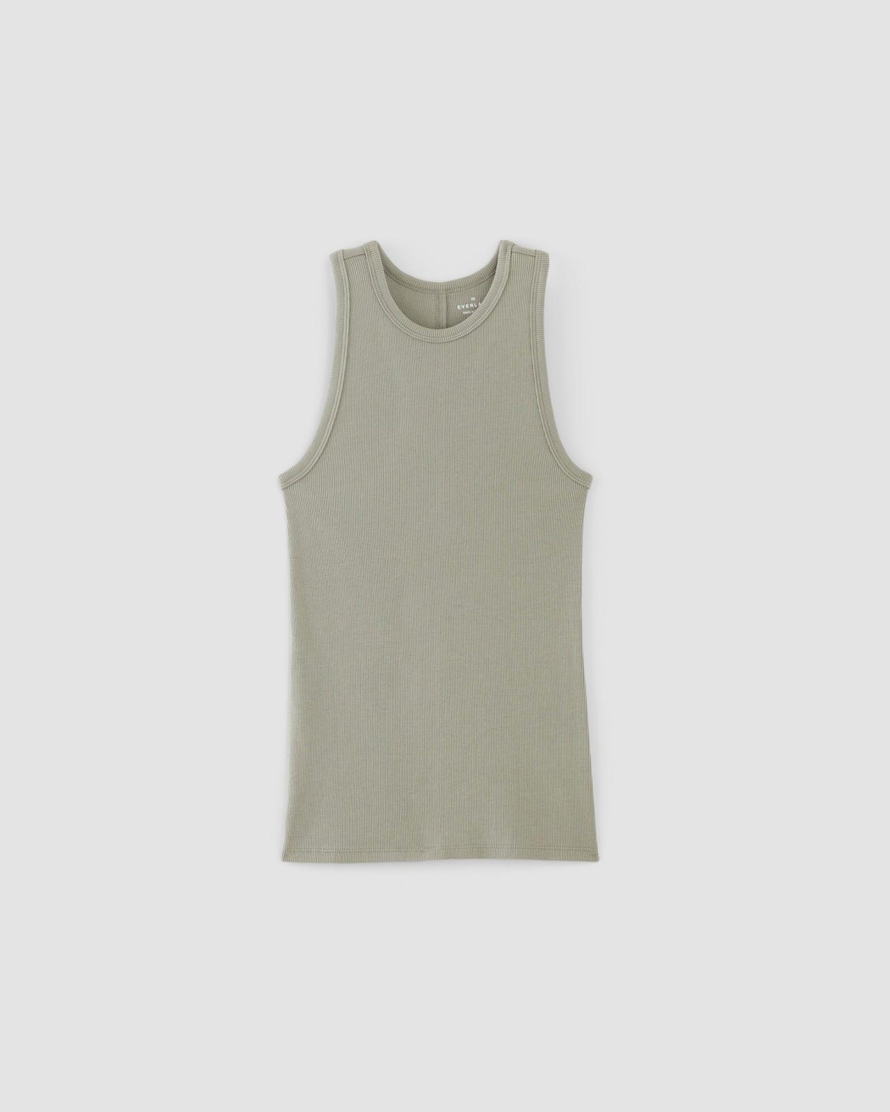 Show a little shoulder. Classic up front sporty at the back our The Supima Micro-Rib Racerback Tank is a new essential to add to your tank lineup. Featuring that statement necklinehigh neck and cutout racerback in our softest ever Supima fine-ribbed cotton it has a skinny fit to flatter in all the right places. Wear it solo to show off that neckline or layer under your favorite zip-up hoodie or cardigan. Supima Cotton Grown in the United States Supima cotton is distinguished by its extra-long fiber length which gives it more durability and a softer hand feel. Womens Supima Micro-Rib Racerback Tank by Everlane in Sage Green, Size 2XS