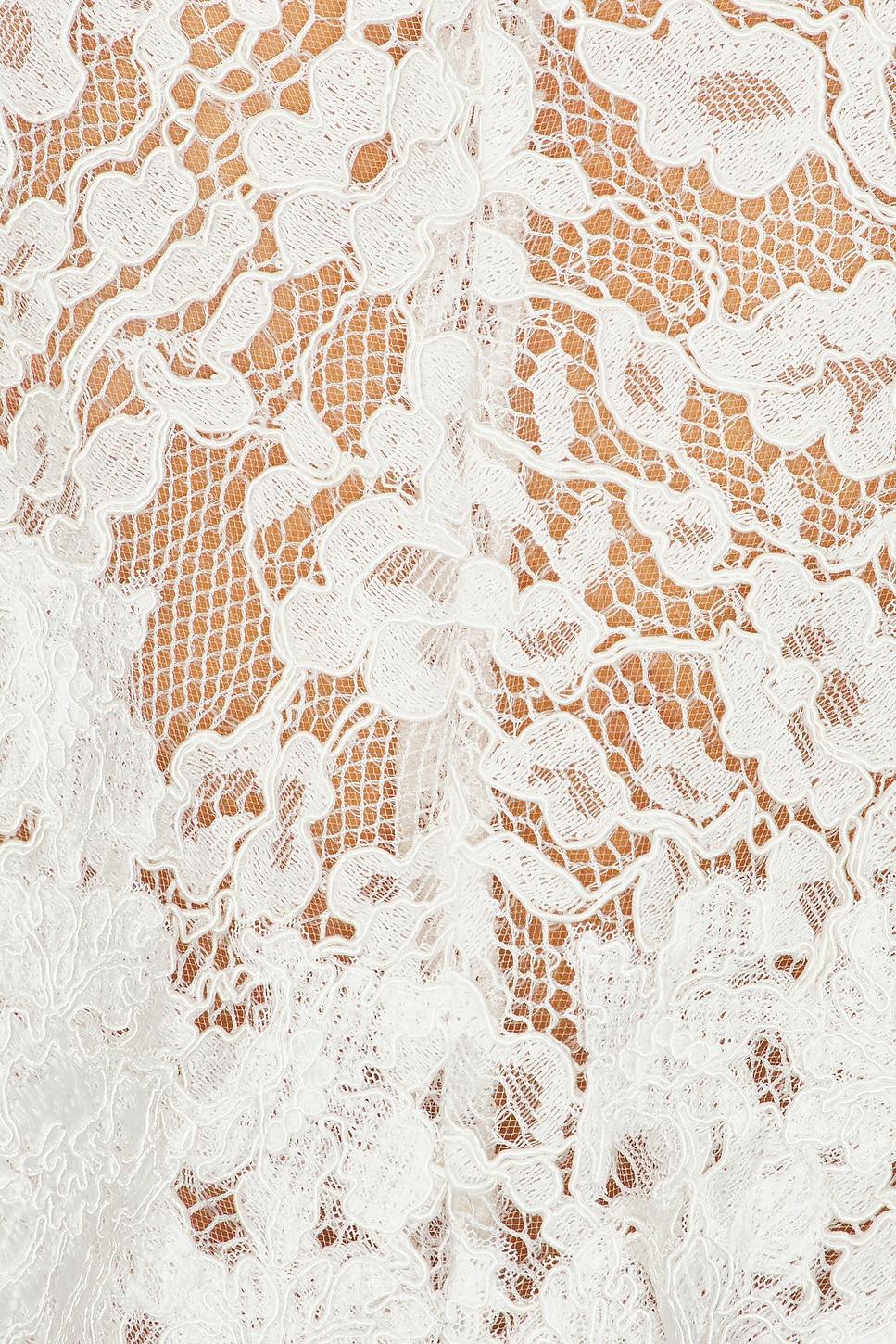 Self 1: 60% naia™ acetate, 40% recycled polyesterSelf 2: 55% cotton, 24% nylon, 21% viscoseSelf 3: 89% polyester, 11% elastaneLining: 100% nylon. Dry clean only. Partially lined. Back hook and eye clasp closure with keyhole designHidden back zipper closure. Sleeveless design with attached lace overlay at shoulders. Crepe and lace fabric with fit and flare styling. Made in China. Revolve Style No. HLSA-WD215. Manufacturer Style No. HED10011 U25.