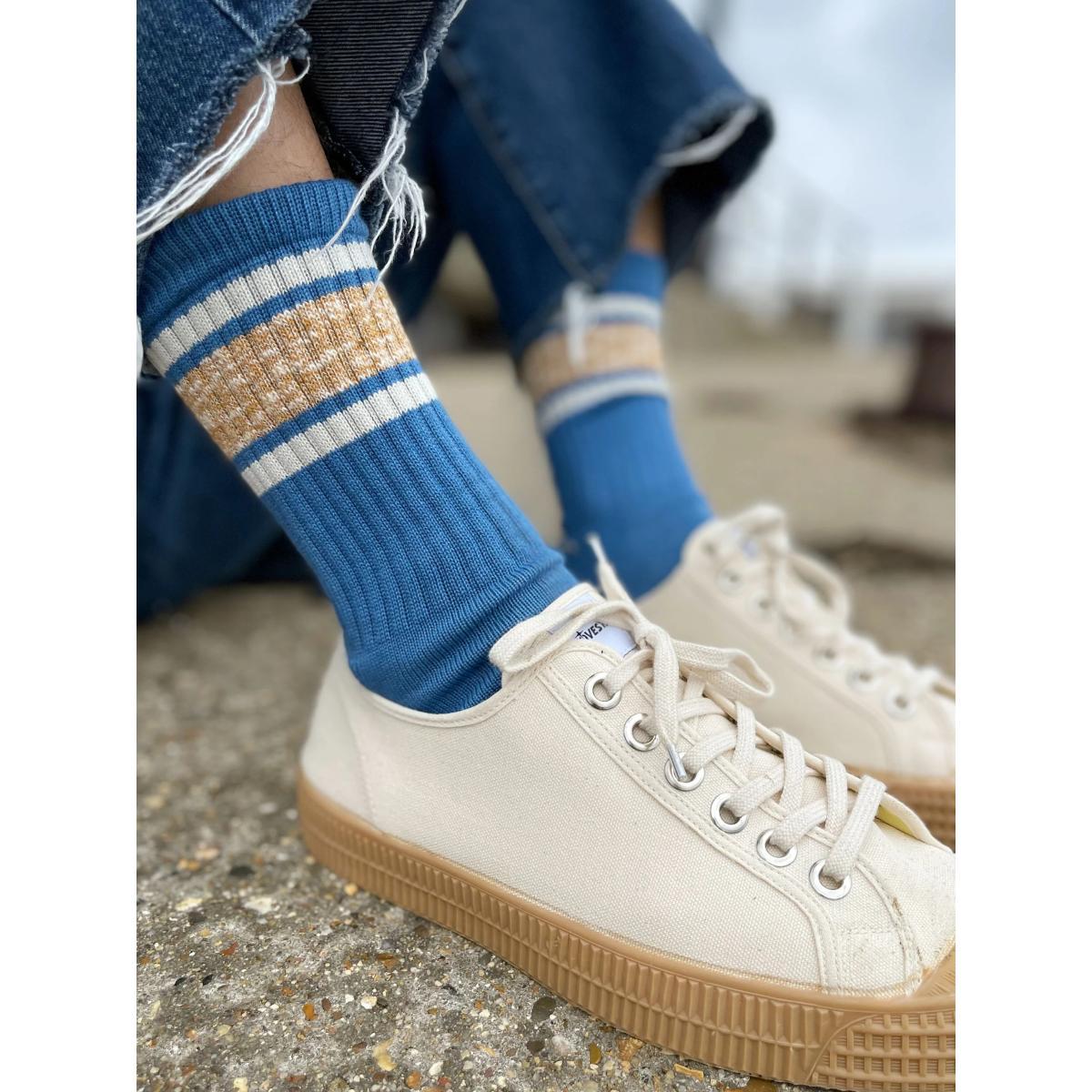 Named after Hans Magnus Andresen, a renowned Norwegian ski jumper from the 1920s, The Magnus socks celebrate the resilience of Norway’s winter sports heritage. With a blue and tan slub, these socks embody the retro style of a bygone era. The thick footbed ensures warmth and comfort, perfect for cold days and inspired by Andresen's pioneering legacy. Key Features: Nordic Heritage: Inspired by Hans Magnus Andresen, a 1920s ski-jumping icon. Classic Style: Blue and tan, with a thick winter footbed. Product Details: Material: 86% Cotton, 13% Polyamide, 1% Elastane Fit: Crew Length Colours: Blue and Tan Slub Heel, Toe and Stripe Size: One Size – Men’s UK 7-12 | US 8-13 | EU 41-46