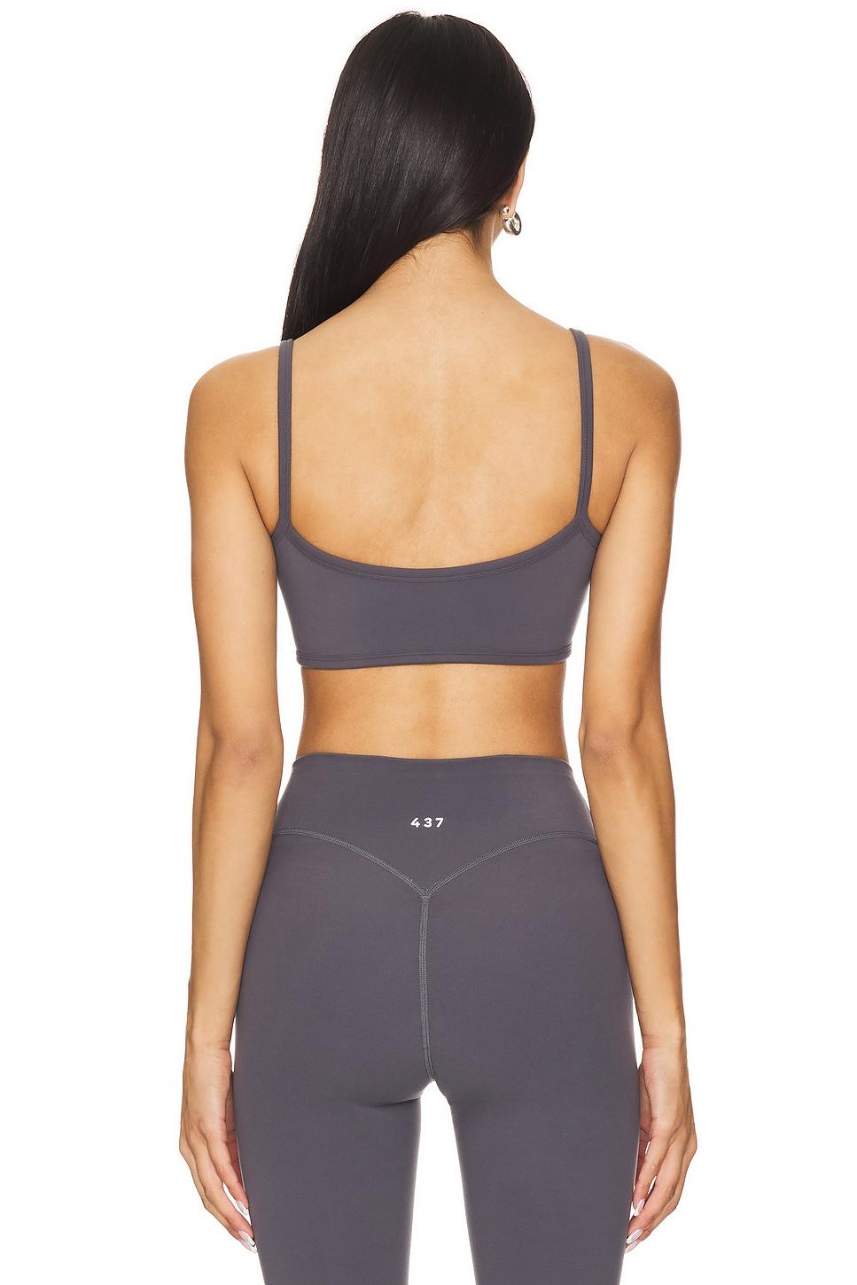 82% recycled polyester, 18% spandex. Made in China. Machine wash cold. Midweight jersey fabric with removable padding in cups. Scoop neckline. Front logo detail. Item not sold as set. Revolve Style No. 437R-WI8. Manufacturer Style No. ACTO1143.