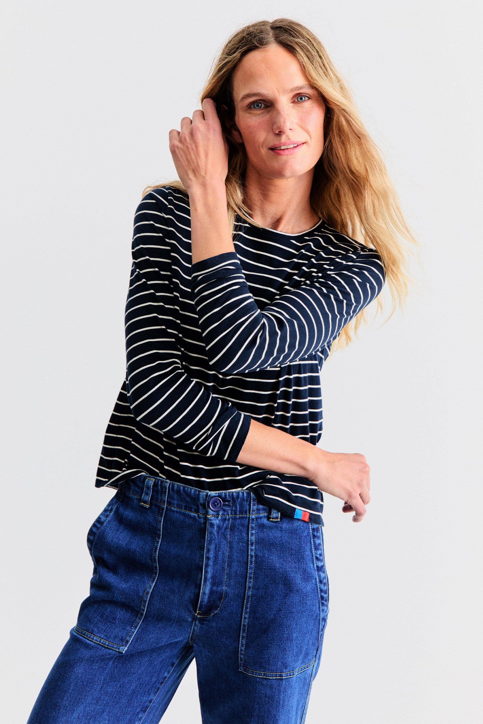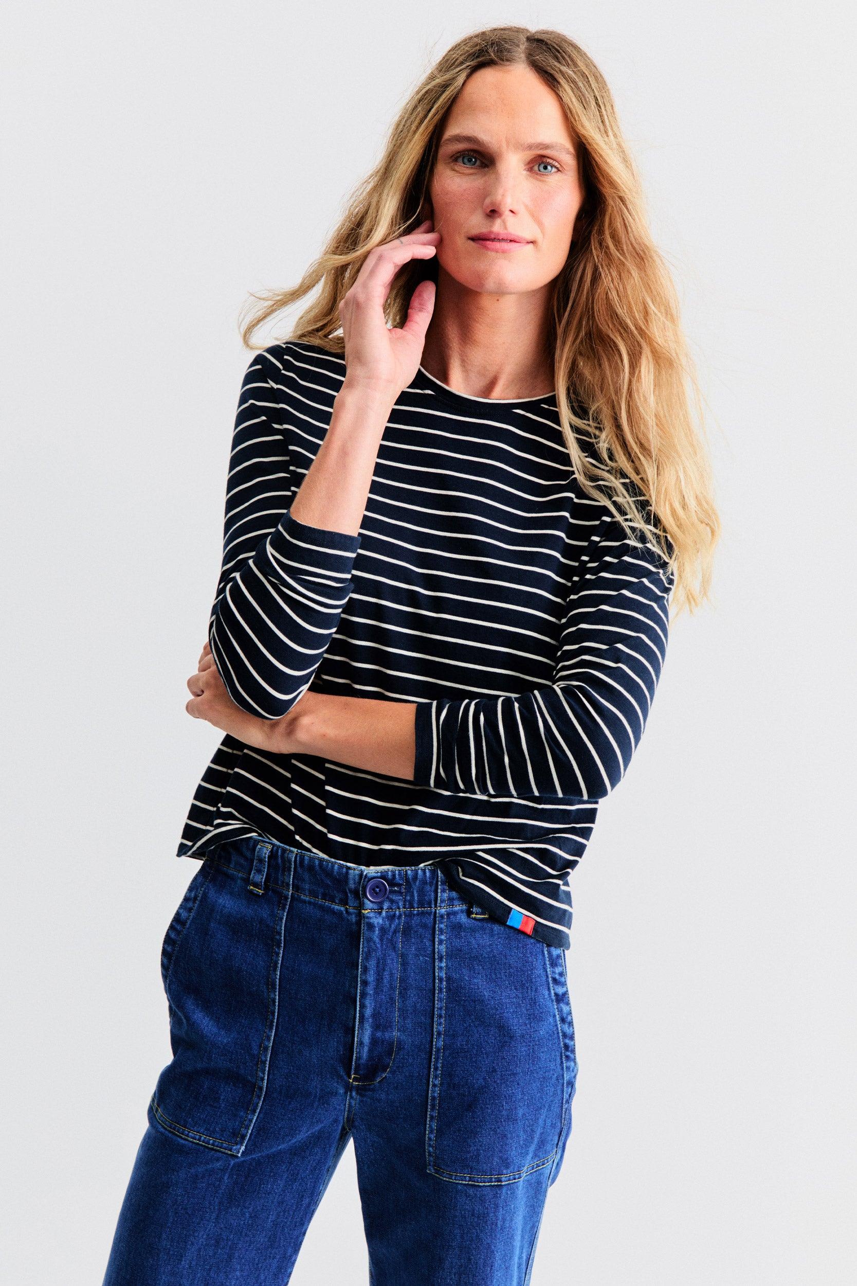 The Modern Long - Navy/Cream Pinstripe Female Product Image