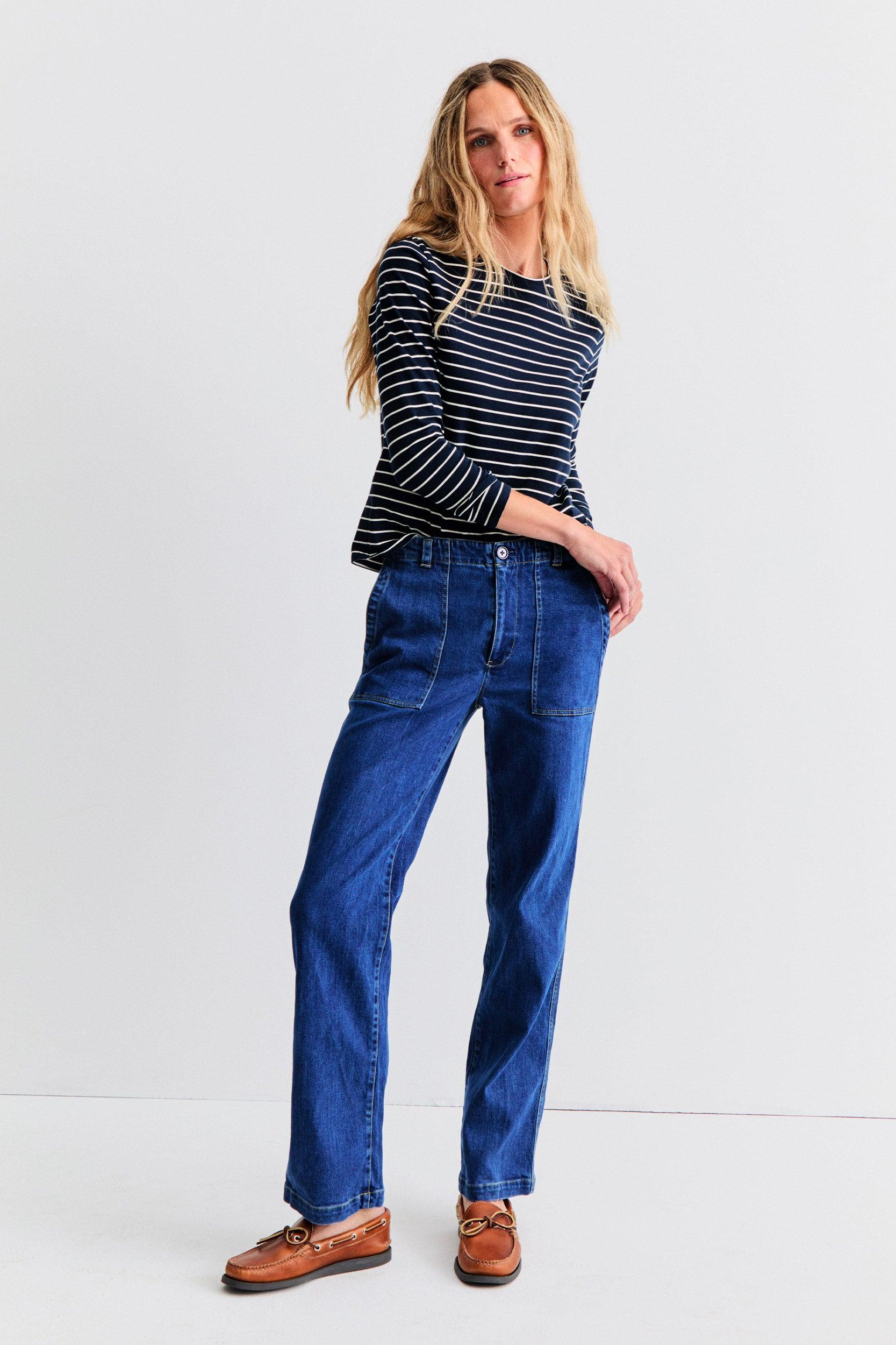 The Modern Long - Navy/Cream Pinstripe Female