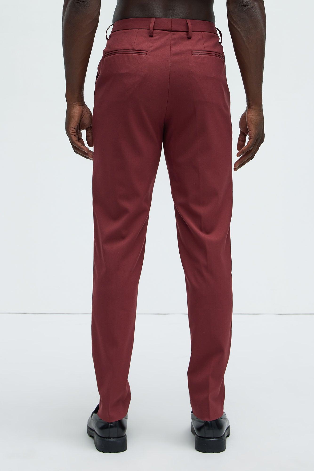 Available In Black, Blue, Brown, Burgundy, Charcoal, Hunter, Mauve, Navy, Off White, Red And Tan. Button Closure Zip Fly Side Hand Pockets Slim Fit Inseam is 33 , can be tailored. Pair with The Modern Stretch Suit Jacket Shell: 65% Polyester 33% Viscose 2% Spandex Lining: 100% Polyester Imported