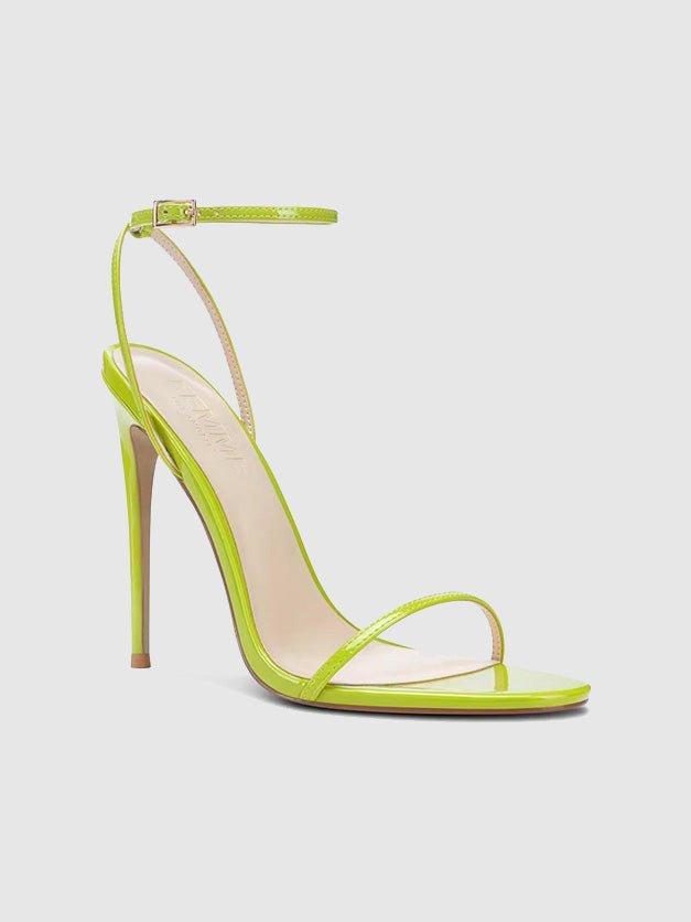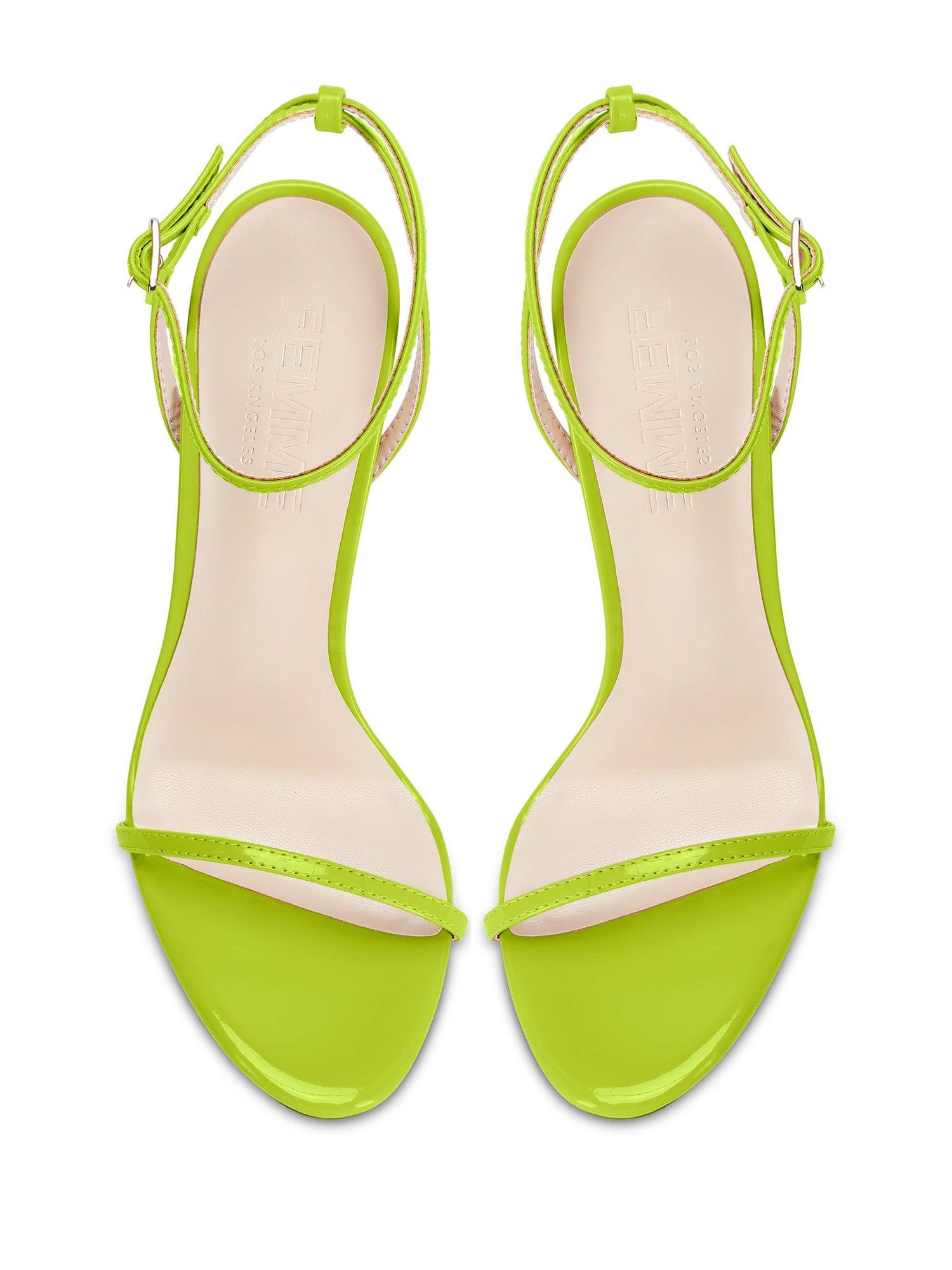 Introducing the Necessary Sandal, a timeless and chic choice for any fashion-conscious woman. These patent leather sandals feature a minimalist vamp silhouette that enhances the natural shape of the foot. The Necessary Sandal is versatile and perfect for any occasion, whether you're dressing up for a night out or running errands during the day. Elevate your fashion game with the Necessary Sandal and add a touch of luxury and sophistication to your shoe collection. Vegan upper Vegan Insole Vegan outsole Open toe rounded heel Adjustable ankle strap Handmade Designed in LA Self-covered stiletto heel, 4.75" (120mm)