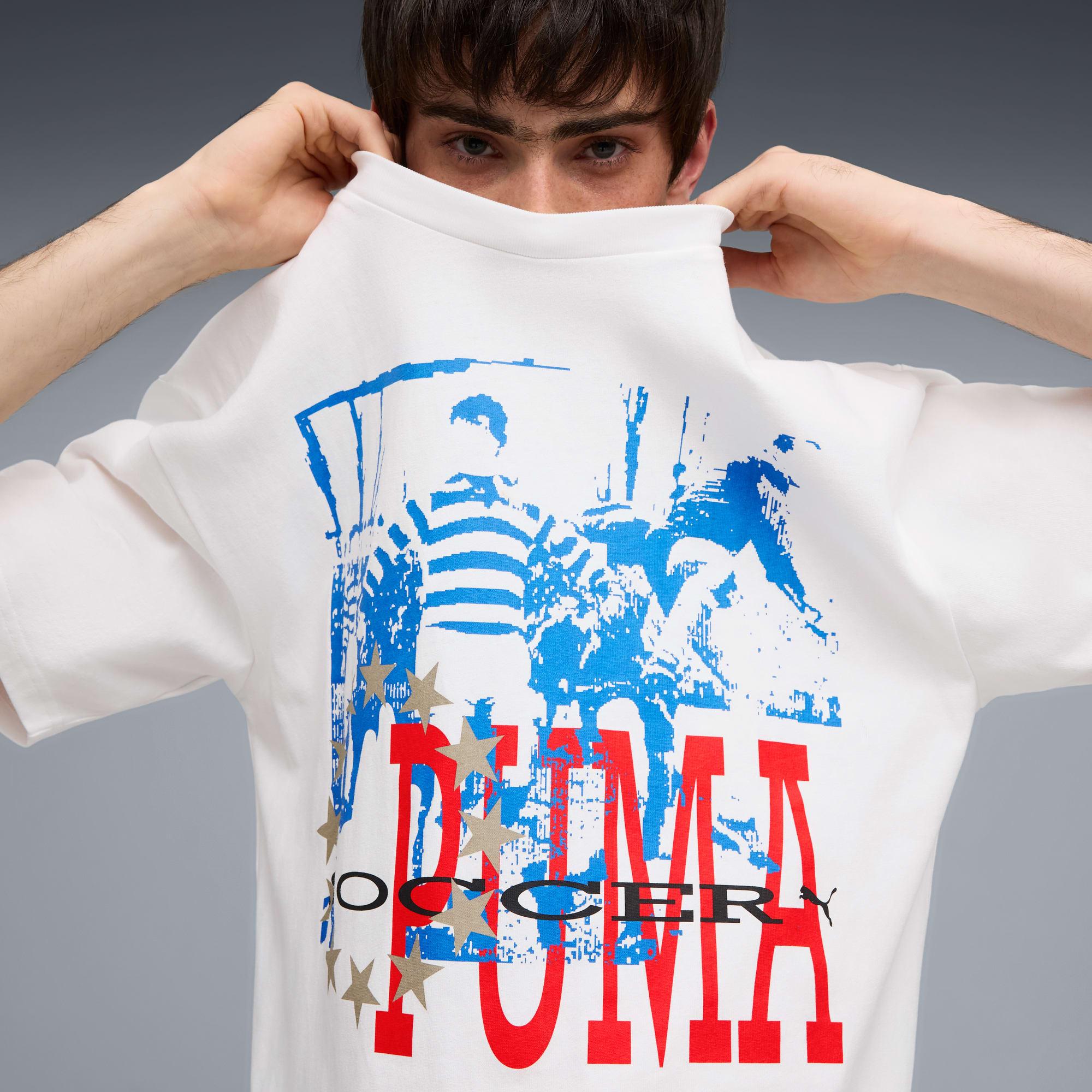 A continuation of the smash-hit "NeverWorn" collection, The NeverWorn VI takes PUMA's history and remixes it for the modern world. This collection is a celebration of our archive and a return to a retro soccer aesthetic with relaxed fits, knits, and new all-over patterns.Made with at least 20% recycled cottonRelaxed fitSingle jerseyCrew neckShort sleevesRegular length