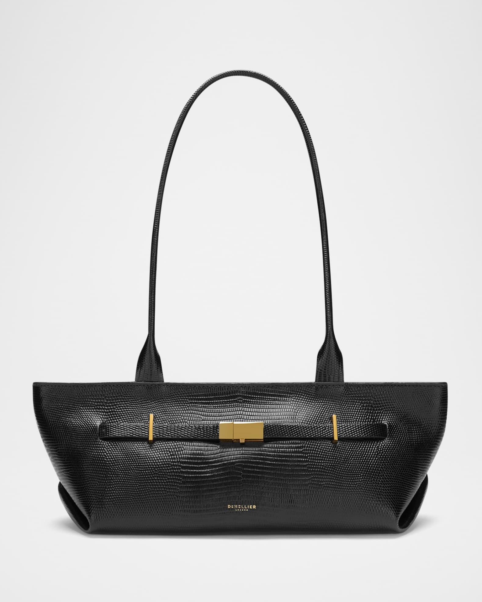 DeMellier "The New York" shoulder bag crafted of high-quality leather Shoulder straps, 11"-23.6"L Zip top closure Exterior, adjustable center buckle strap Lining: Cotton Approx. 5.5"H x 9"W x 2.3"D Item Weight (Lbs.): 1.2 Wipe clean Care Instructions: Small creases may develop with use and color may change slightly, adding to their charm. All our leathers have a natural finish, giving them a soft and luxurious feel. When possible, try to avoid rubbing them against rough or sharp surfaces to minimize scratching, and avoid using hand creams, oils, and sanitizers before using the bags. Should the leather get wet, please remove any residual water with a dry cloth and allow it to dry naturally. We recommend professional cleaning services when required. Avoid prolonged contact with light and dark-colored clothing and upholstery to minimize the risk of color transfer. Please keep away from heat and dampness and store in the dust bag upright with paper stuffing, ensuring all straps and chains are placed inside the bag to avoid marking the leather.