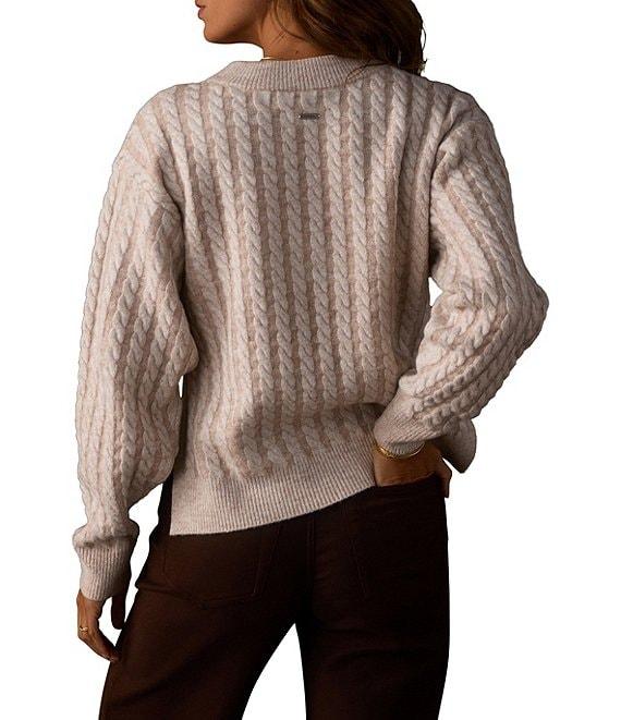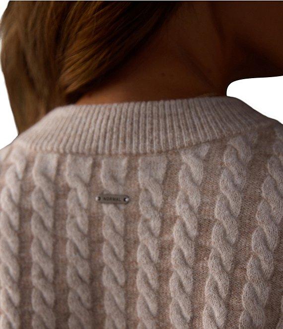 From The Normal Brand, this top features: Cable knit fabrication Sweater silhouette Crew neckline Long sleeves Dropped shoulder Soft slightly fuzzy feel Relaxed fit High-low hemline Pullover construction Recycled polyester/acrylic/wool/spandex Hand wash Imported. The Cable Knit Split Side Pullover is cozy, comfy, and just the right amount of textured. It s got a soft, slightly fuzzy feel with a two-tone cable knit. With dropped shoulders, a relaxed hi-low hem, and side slits, it's the kind of sweater you'll want to throw on all season long. Finished with ribbed edges.