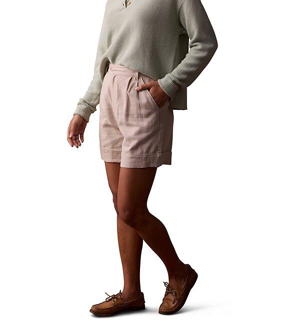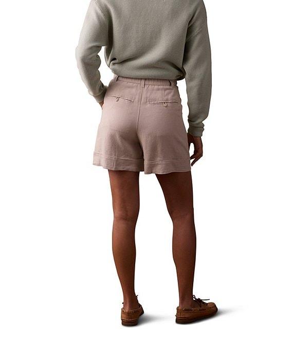 From The Normal Brand, these shorts feature: Linen blend fabrication Tailored silhouette High waist Front pleated detail Two front pocket Two back welt pocket Belt loops Relaxed fit Fixed cuff hemline Hidden hook/zip fly closure Approx. 5" inseam; 26" leg opening Viscose/linen Machine wash Imported.
