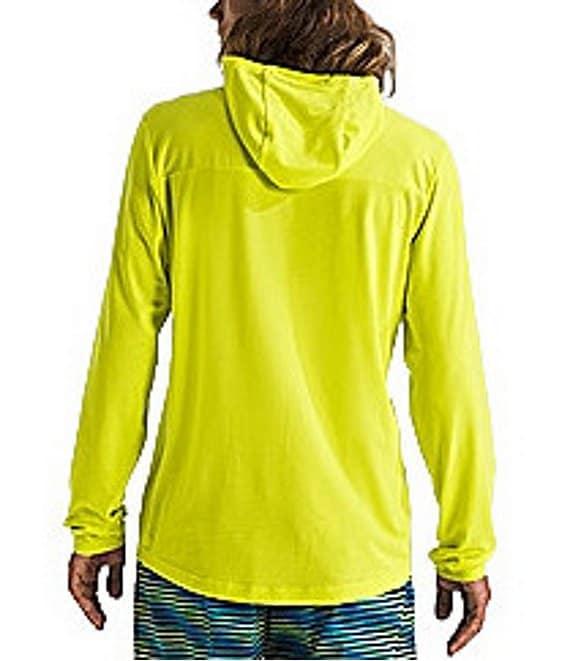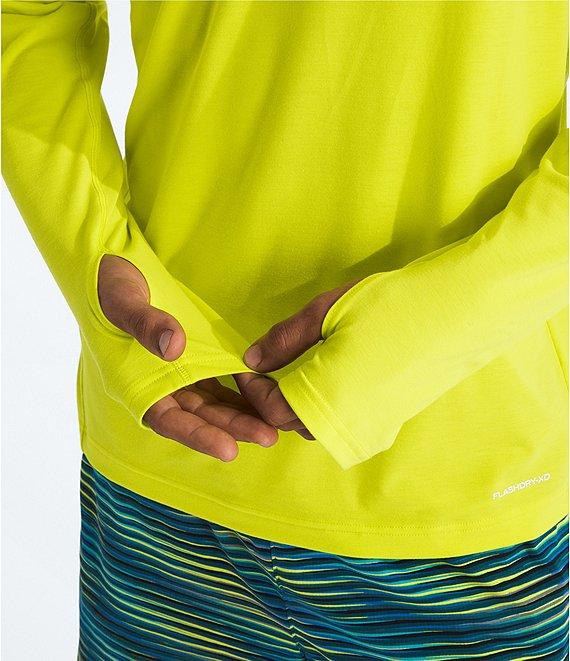 From The North Face, this hoodie features: Regular fit 3-piece hood Mock neck Self-fabric tape on the inner back collar Long sleeves Thumbholes created by top-panel opening on sleeves "The North Face" logo printed on the left side of chest Pullover construction Ultraviolet Protection Factor (UPF) 40 Flash Dry-XD materials Recycled polyester/elastane Machine wash/tumble dry Imported.