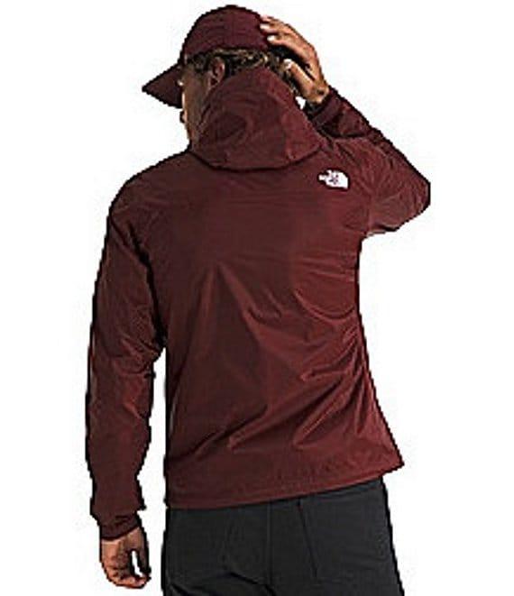 From The North Face, this jacket features: Regular fit Attached, adjustable, three-piece hood with a drawcord and cord locks Exposed, water-repellent center front zip with a zipper garage at the upper neck Vertical, secure-zip chest pocket Jacket stows in the chest pocket Exposed-zip hand pockets Internal drop-in pocket behind hand pocket Pit-zip venting Adjustable hook-and-loop cuff tabs Internal elastic cinch-cord with a cord lock at the hem for adjustability Printed lining Heat transfer logo on left chest and back-right shoulder Waterproof, breathable, seam-sealed Dry Vent™ 2.5L shell with a non-PFC DWR finish helps keep you dry Recycled nylon Machine wash/tumble dry Imported.