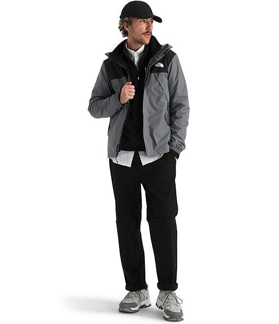 From The North Face, this jacket features: Outer jacket: Waterproof, breathable, seam-sealed DRYVENT™ shell with a non-PFC DWR finish helps keep you dry Outer body fabric made with recycled nylon Adjustable, three-piece hood with an elastic drawcord and cord locks Center-front zip has a draft flap with hook-and-loop closures Secure-zip welt hand pockets Elasticated cuffs Internal elastic drawcord with a cord lock at hem for adjustability Heat-transfer logo on left chest and back-right shoulder Inner jacket: Inner body fabric made with recycled polyester Side-entry, secure-zip hand pockets Internal locker loop at the back of the neckline Embroidered logo on left side of chest Care: Outer and inner have Triclimate® loops and snaps for snap-in compatibility with each other Outer of DRYVENT™ recycled nylon ripstop with non-PFC durable, water-repellent (non-PFC DWR); inner of recycled polyester fleece Machine wash/tumble dry Imported.