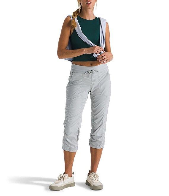 From The North Face, these pants features: Herringbone woven fabrication Flat front silhouette Wide drawcord waistband 4-way stretch 40+ UPF ultraviolet protection Non-PFC DWR finish for added water repellency Vertical bartack at back of waistband to secure the drawcord FlashDry materials offer enhanced moisture Faux fly Straight leg fit Pull-on construction Approx. 22" inseam; 17" leg opening Recycled nylon/recycled polyester/elastane Machine wash Imported Stay comfortable wherever you explore in the Women s Aphrodite 2.0 Capris durable, water-repelling, quick-drying pants that are perfect for quality time in the outdoors.