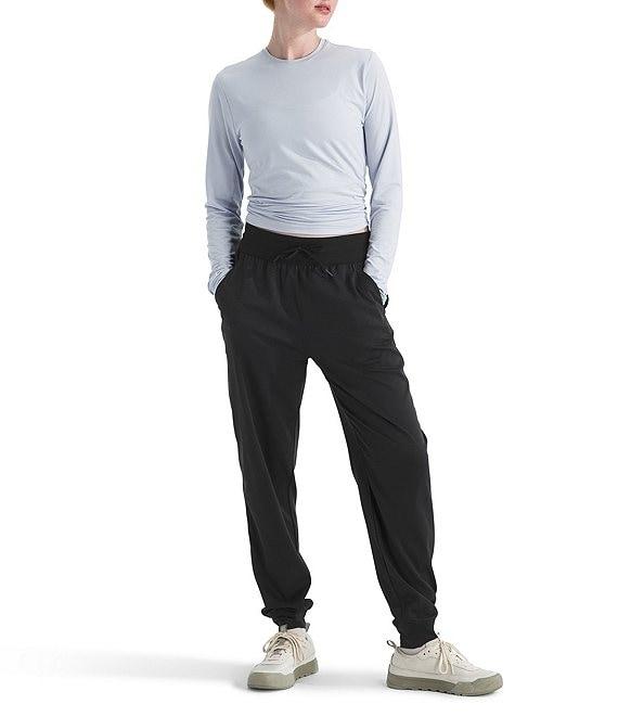 From The North Face, these pants features: Water-repellent herringbone fabrication Jogger silhouette Rib-knit waist Adjustable tie drawcord Straight leg Slash hand pocket Concealed-zip pocket on right seam FLASHDRY material offer enhanced moisture management Non-PFC DWR finish for added water repellency Four-way stretch Relaxed fit Pull-on construction Approx. 28" length Nylon/elastane Machine wash Imported. With FLASHDRY and non-PFC durable water-repellent (non-PFC DWR) finish/Featuring ultra-comfy, water-repellent herringbone fabric with four-way stretch, the durable Women s Aphrodite Arise Jogger makes it easy to do what you love./FLASHDRY materials offer enhanced moisture management to help keep you comfortable/Non-PFC DWR finish for added water repellency/2x2 rib-knit waistband with a drawcord for adjustability/Slash hand pockets/Concealed-zip pocket on right seam/Heat transfer logo on back-right yoke