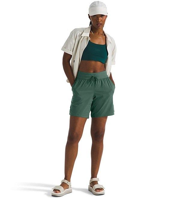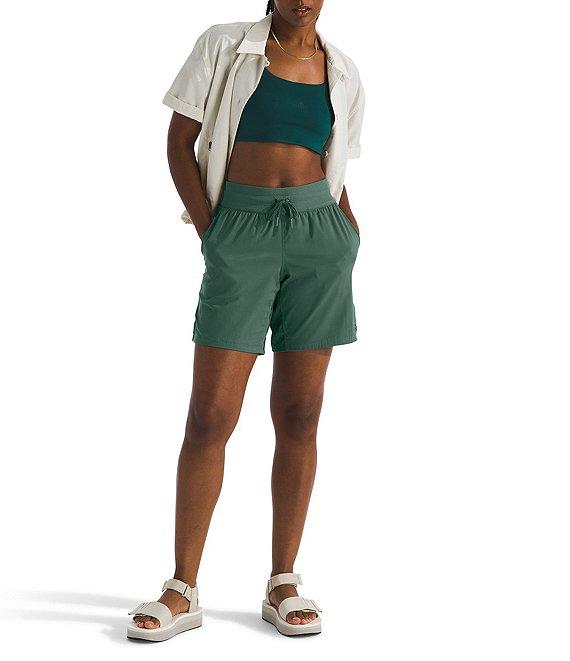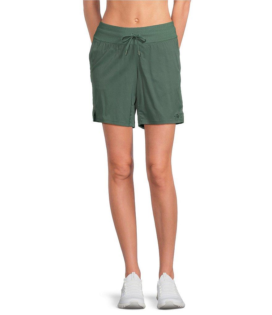 From The North Face, these shorts features: Four-way stretch fabrication Drawcord waistband Open hand pockets Concealed-zip back pocket Curved seam at back yoke Non-PFC DWR finish for added water repellency FlashDry materials offer enhanced moisture Vertical bartack at back of waistband Embroidered logo on left thigh Regular fit Split hemline Pull-on construction Approx. 8" inseam Nylon/recycled nylon/elastane Machine wash Imported. Keep it cool and comfortable with the Women s Aphrodite Motion Bermuda Shorts. With four-way stretch, FLASHDRY fabric and a tall waistband for added comfort, you can explore wherever the wind takes you./Sizes: XS, S, M, L, XL, XXL, 3XL/Inseam: L 8 /body: 70D x 40D 123 g/m 56% nylon, 37% recycled nylon, 7% elastane herringbone woven with FLASHDRY and non-PFC durable water-repellent (non-PFC DWR) finish/waistband: 50D 257 g/m 94% recycled polyester, 6% elastane 2x2 rib knit/pocket lining: 75D 83 g/m 100% recycled polyester knit mesh/Regular fit/Ultra-comfortable herringbone fabric with four-way stretch for increased mobility/FLASHDRY materials offer enhanced moisture management to help keep you comfortable/Non-PFC DWR finish for added water repellency/2x2 rib-knit waistband with a drawcord for adjustability/Vertical bartack at back of waistband to secure the drawcord/Open hand pockets/Concealed-zip back pocket/Inseam gusset for increased mobility/Split hem at side seams for mobility/Curved seam at back yoke/Embroidered logo on left thigh