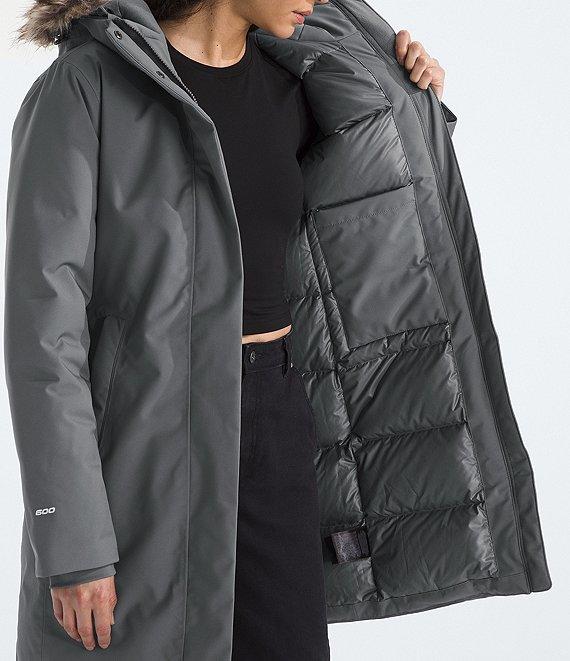 From The North Face, this jacket features: DRYVENT fabrication Parka silhouette Attached hood with a zip off faux fur trim Long sleeves with internal elasticated thumbhole cuffs Secure zip welt hand pocket Waterproof breathable seam sealed 2L shell with non-PFC DWR finish 600-fill recycled waterfowl down Encased internal shock cord at waistband for adjustable fit Heat transfer logo on left chest and back right shoulder Regular fit Fully lined Straight hemline VISLON snap front/zip closure Approx. 32" length Recycled polyester Machine wash Imported. Sizes: XS, S, M, L, XL, XXL/body: 75D 184 g/m DRYVENT 2L 100% recycled polyester with non-PFC durable water-repellent (non-PFC DWR) finish/body lining: 50D 71 g/m 100% recycled polyester/pocket lining: 75D 660 g/m 100% recycled polyester taffeta/Regular fit/Waterproof, breathable, seam-sealed DRYVENT 2L shell with a non-PFC DWR finish helps keep you dry/Body fabric and lining made with recycled polyester/600 fill recycled waterfowl down/Attached, adjustable hood with a zip-off faux-fur trim/VISLON center front zip has a snap-closure stormflap/Secure-zip welt hand pockets/Internal elasticated cuffs with thumbholes/Encased internal shockcord at waistband for an adjustable fit/Heat transfer logo on left chest and back-right shoulder