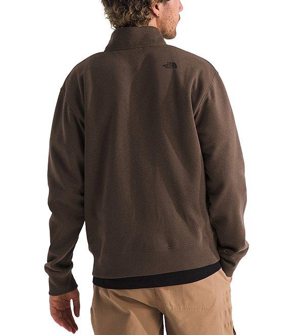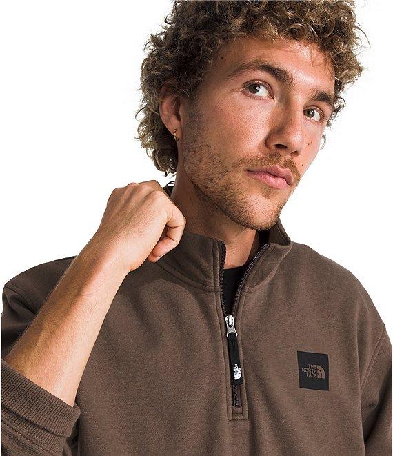 From The North Face, this pullover features: Stand collar Long sleeves Ribbed cuffs and hem Quarter-zip placket Screen printed box logo on the left side of chest Logo on back-right shoulder Soft construction Timeless design Regular fit Climate-conscious cotton/recycled polyester; rib of climate-conscious cotton/elastane Machine wash/tumble dry Imported.