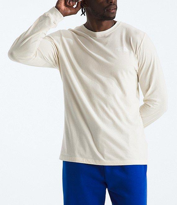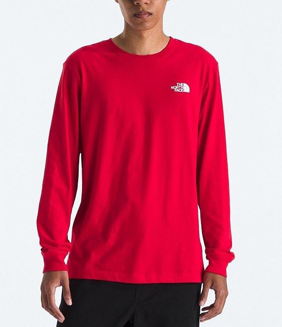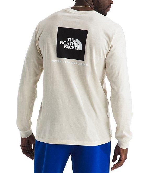 From The North Face, this t-shirt features: Crew neck Long sleeves Ribbed collar and cuffs Screen printed logo on left side of chest Box logo graphic on the back Pullover construction Solid body of cotton; solid rib of cotton Machine wash/tumble dry Imported.